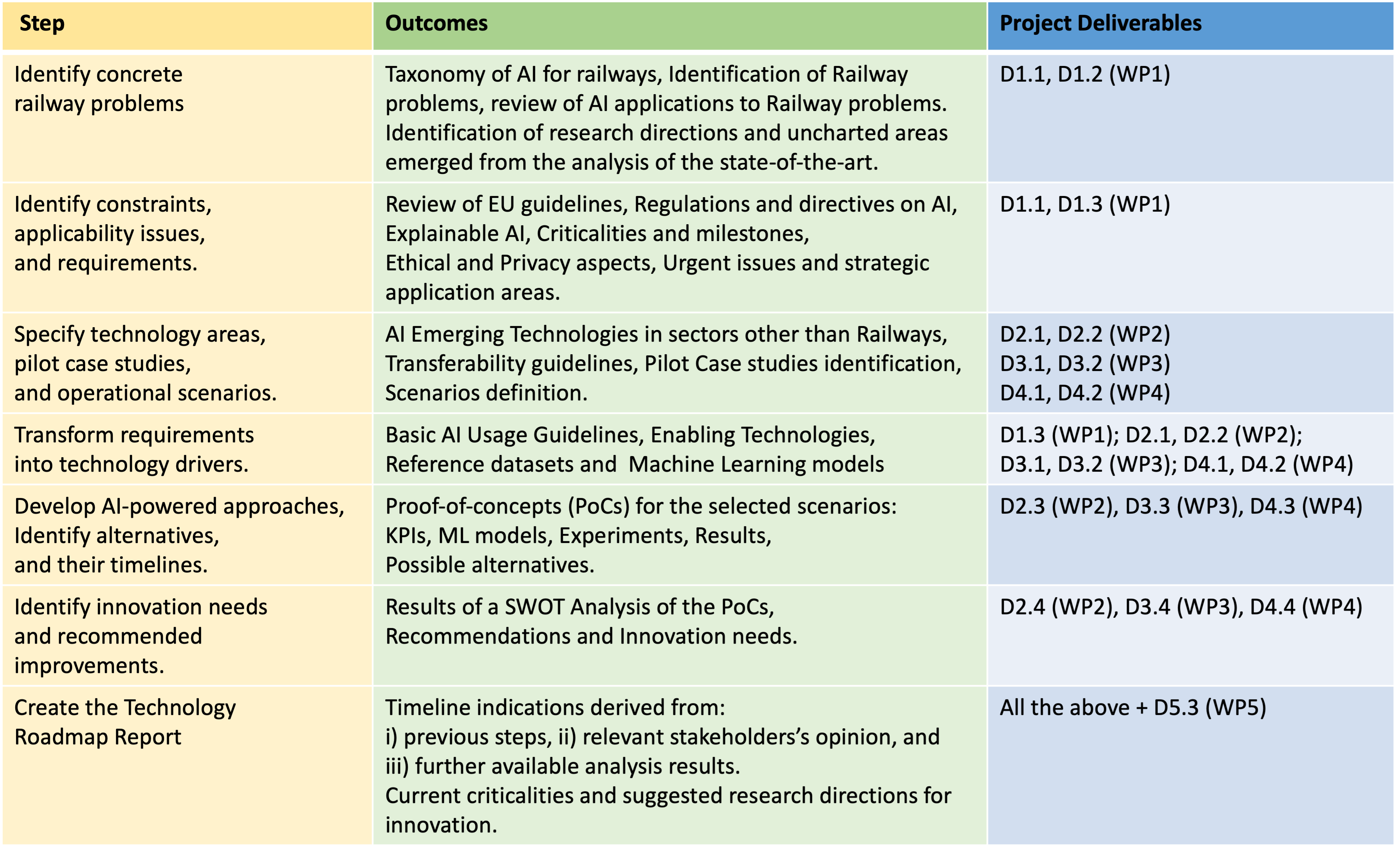 To achieve these objectives, RAILS followed a Technology Road-Mapping Methodology, integrating research activities into comprehensive roadmaps for safety and automation (WP2), maintenance and inspection (WP3), and traffic planning and management (WP4).