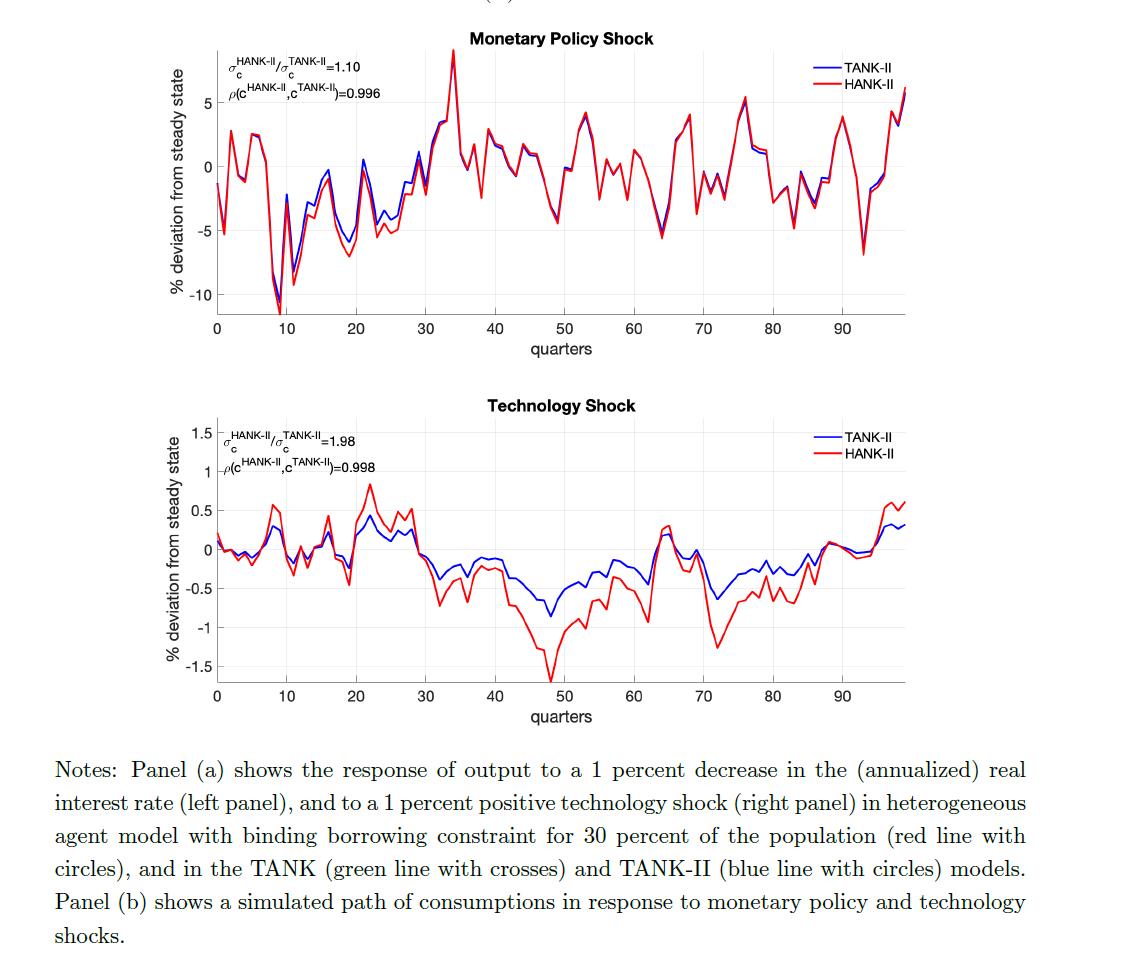 “Heterogeneity and Aggregate Fluctuations: Insights from TANK Models” (with D. Debortoli), forthcoming in NBER Macroeconomics Annual (2025). The paper show how a generalized TANK model can approximate well the aggregate properties of a variety of HANK models. This paper was presented, among many other venues, to an ECB Task Force on Heterogeneity.