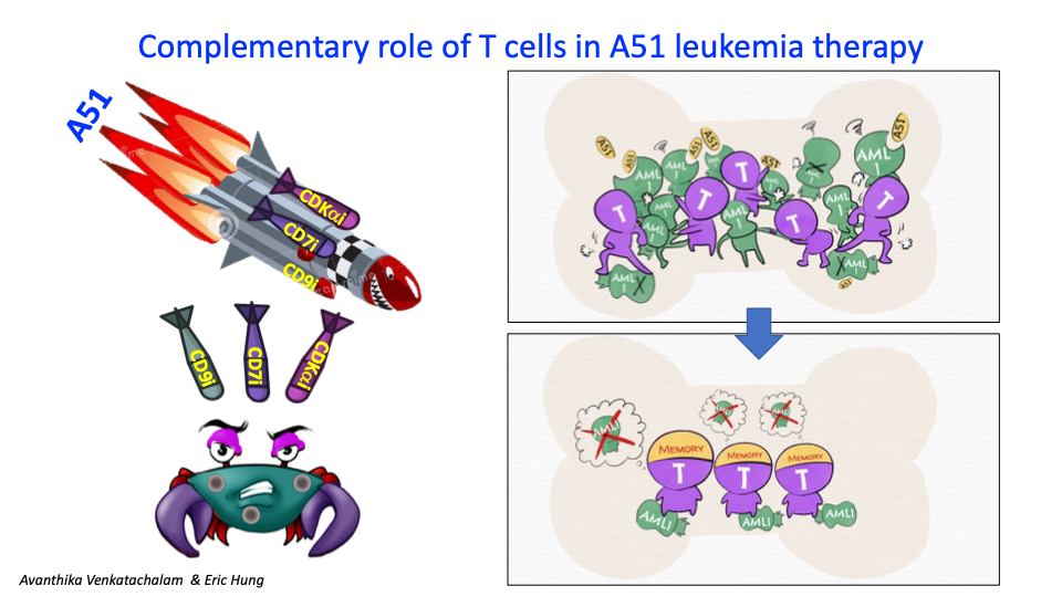 3. We previously speculated that one of the reasons for our observed cure of leukemic mice following the drug treatment was immune support, as in immune-deficient strains or in T cell-depleted AML mice, we have not observed leukemia cure. A major progress in these investigations was the demonstration of immune memory to the leukemia generated in the course of treatment, sufficient to prevent re-engraftment of the cognate leukemia. Further work is being planned to identify specific T cell clones behind the immune property.