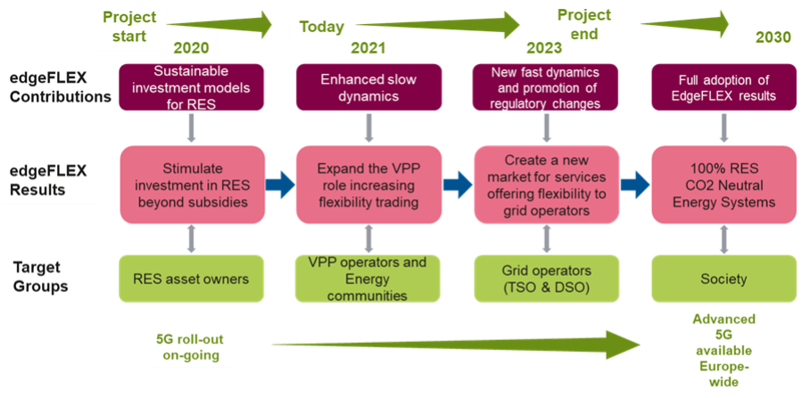 edgeFLEX links technical solutions to societal expectations. Short reaction times can be addressed by 5G-powered edge clouds linking dispersed devices in near real-time. In this respect, a new concept of VPPs becomes possible with communications corresponding to multiple layers of dynamics. A new architecture for VPPs deploying a multi-layer solution enables the electrical system to cope with intermittent energy sources. VPPs are brought to a new level enabling them to interact on markets offering ancillary services to System Operators. edgeFLEX developed this next generation VPP concept and demonstrates elements of it in three field trials and laboratory tests. It explored innovative optimisations, financial tools and business scenarios for VPPs and assessed their economic and societal impact. It worked actively to remove barriers by contributing to global standards and European level regulation.