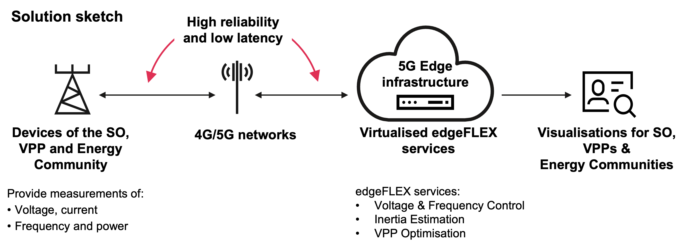 • A set of 5G-ready solutions enabling the integration of DERs into the energy system and supporting the use of edge infrastructure to virtualise and, if desired, enable the distributed operation of edgeFLEX services in the grid (Fig4).