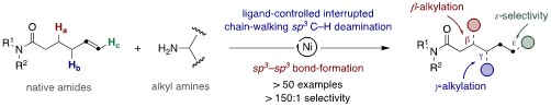 In order to tackle the challenge of combining C-C bond-functionalization with chain-walking reactions for studying the possibility of promoting bond-formation at remote sp3 sites in a stereoselective manner, we have recently shown the ability to discriminate at will the possibility for promoting C-C bond-formation at a saturated hydrocarbon side-chain by harnessing the propensity of carbonyl groups to direct functionalization at different sp3 sites. These results will certainly set the basis for studying the possibility of enabling enantioselective transformations within the context of both C-C functionalization as well as sp3-sp3 bond-forming events.