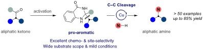(4) Following up our interest on the development of C-C bond-functionalization events by virtue of dual catalysis, we have recently taken the conceptions delineated in (1) and show the possibilities that this might have to build up other sp3 architectures. Specifically, we have shown the possibility of promoting a sp3 amination event by means of C-C bond-functionalization of carbonyl derivatives, offering a complementary reactivity mode to classical sp3 C-N bond-forming reactions that require the utilization of prefunctionalized organic halides or harsh reaction conditions (Angew. Chem. Int. Ed. 2023, 62, e202217386).
