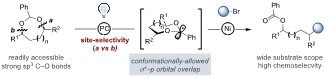 (5) The virtues of Ni catalysis and photoredox endeavors have been explored a bit further in our group for building up sp3-sp3 architectures. In particular we have found the possibility to promote b-fragmentation beyond the realm of C-C functionalization (reported by our group recently: J. Am. Chem. Soc. 2020, 142, 20594), but allowing the establishing of a technique capable of promoting unconventional sp3 C-O bond-cleavage as well, certainly an enormous step-forward for building up sp3 architectures from simple building blocks (J. Am. Chem. Soc. 2022, 144, 11558).