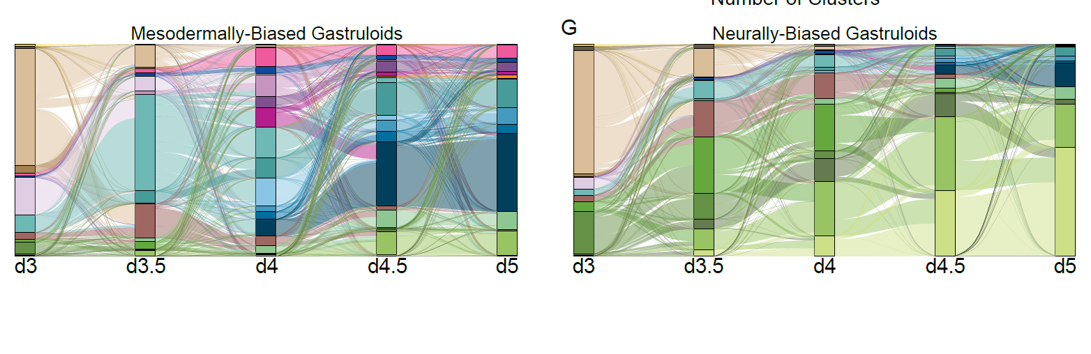 As a model to perform screens, we established and characterised gastruloids as an in vitro complex system of lineage commitment. We defined intra- and inter- gastruloid heterogeneity and with our collaborators in John Marioni’s lab we developed a deconvolution tool which allows us to discriminate between heterogeneity and perturbation signals (Rosen et al 2022, BiorivxID: 509783). We generated mouse embryonic stem cell clonal lines containing a CRISPRi system and thoroughly characterised their derivative gastruloids using 10X single cell RNA sequencing. We found that cell composition of gastruloids derived from the CRISPRi clonal lines differs from that of WT-derived gastruloids, which was valuable information to design our screen.
