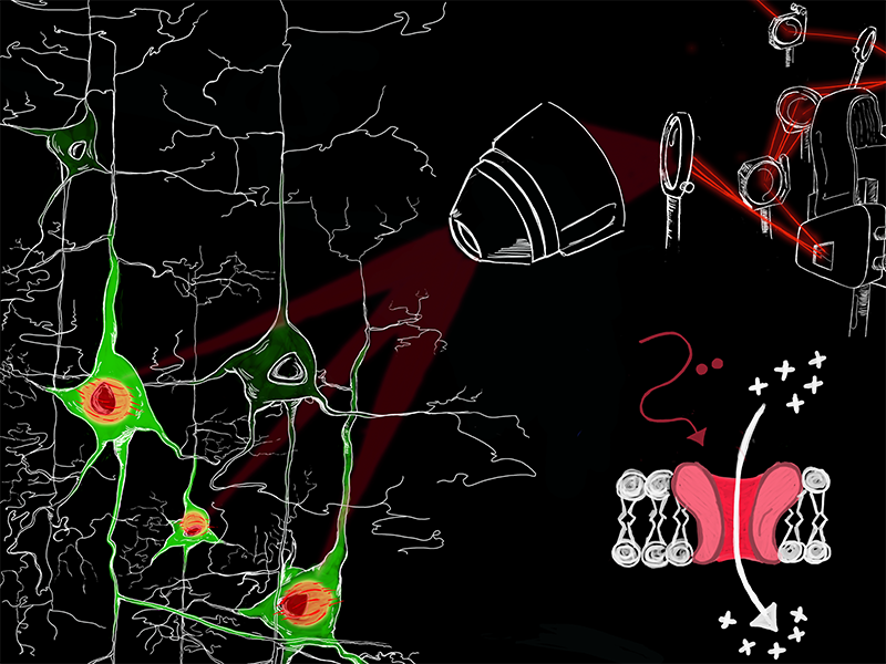 To achieve precise optical control of neuronal circuits with high spatial temporal precision, we have worked on testing and identifying new optogenetics constructs that optimize the use of all-optical optogenetics (A1.3). Specifically, we have been able to demonstrate 2P bi-directional neuronal control of neuronal activity using the opsin BiPOLE developed by the Peter Hegemann labs (J. Vierock, et al. Nature communications, 2021) and efficient 2P inhibition using the newly developed a new K+ conducting opsin (WichR) also developed by the Hegemann lab (J. Vierock, et al. Science Advance 2022).