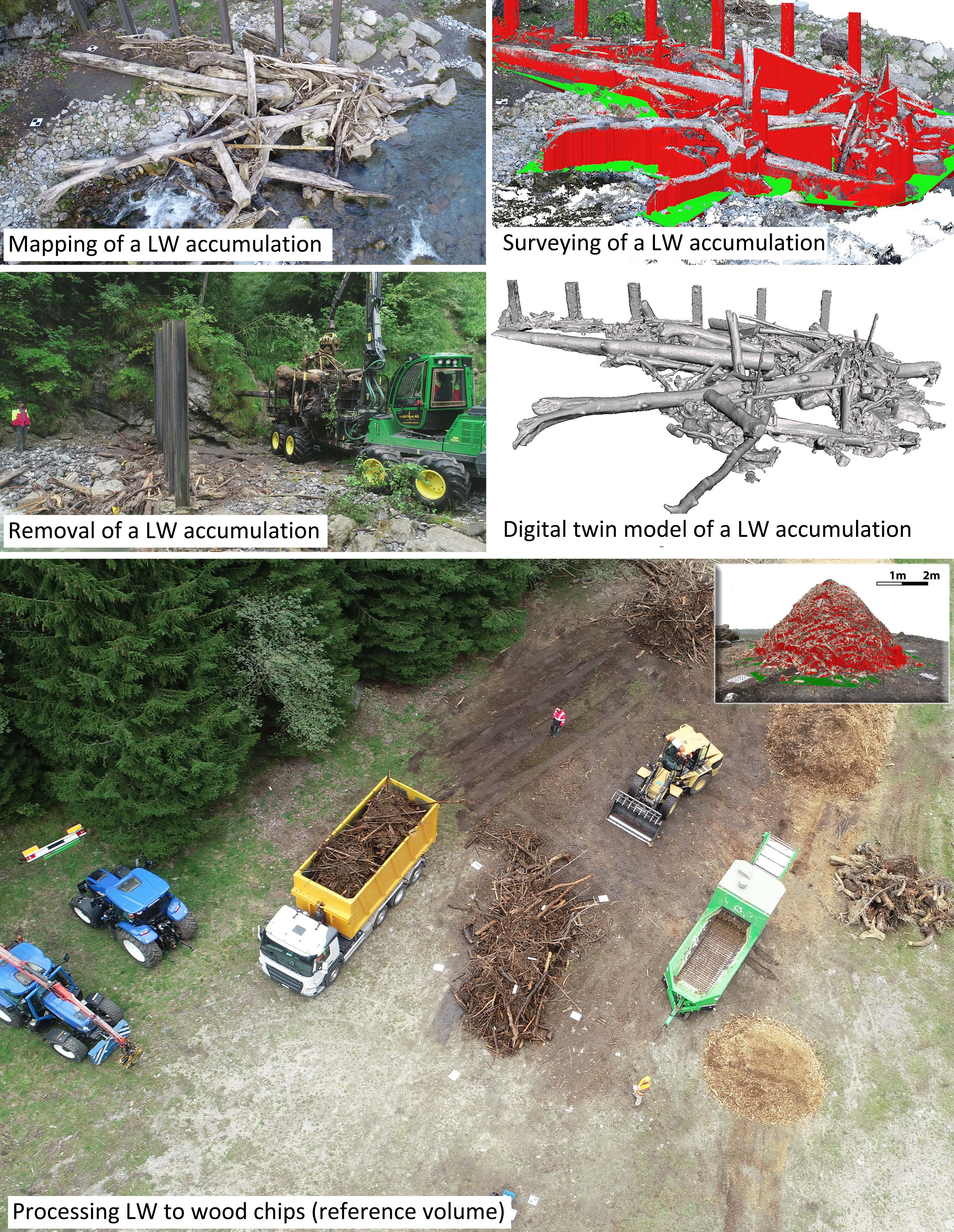 To date, little knowledge is available about LW dynamics (e.g. roll, rotation, impact forces) and accumulation characteristics (e.g. volume, porosity, structural alignment). However, such knowledge is urgently needed to reduce the risk and damage potential of LW during catastrophic events, and help in the design of more resilient instream structures and well-functioning LW retention racks. This Marie Skłodowska-Curie Action (MSCA), titled “SmartWood_3D”, closes the gap in data availability by employing (1) innovative smart sensors, installed into prototype logs “SmartWood” for quantifying LW dynamics during transport, and (2) an image-based 3D-surveying method “Structure from Motion (SfM) photogrammetry” for the assessment of LW accumulation characteristics via 3D models (digital twin models). The gained data and results allow for novel insights into LW movement behavior, help in the prediction of actual impact forces and significantly advance the assessment of prototype LW accumulations, which will be of relevance for river managers and engineers to maintain the functionality of instream structures and safety for local communities.
