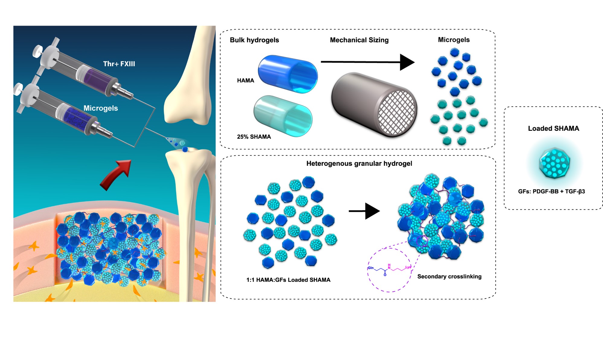 In conclusion, in this project we were able to transform bulk hydrogels where the cells cannot penetrate into a granular system with cell guidance capabilities. The results demonstrated that our strategy can be easily extrapolated to other tissues and, the most important, the whole system can retain different GFs cocktails depending on the need.