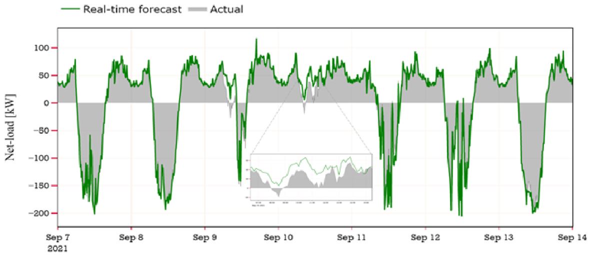 The second main module within the GiSTDS was rolling horizon forecasting. The accurate forecasts give appropriate overviews about the uncertain parameters such as PV production, net-load consumption and other required uncertain parameters. The developed forecasting module uses statistical methods to forecast timeseries. It is noteworthy that the host’s core production, GridEye, provides real-time monitoring database which improves the accuracy of our forecasting methods. Furthermore, the availability of LV monitoring data in some critical points of the grid are used to reflect the information behind-the-meter. The outputs of forecasting module are completely used in the real-time control and proposed transactive system.