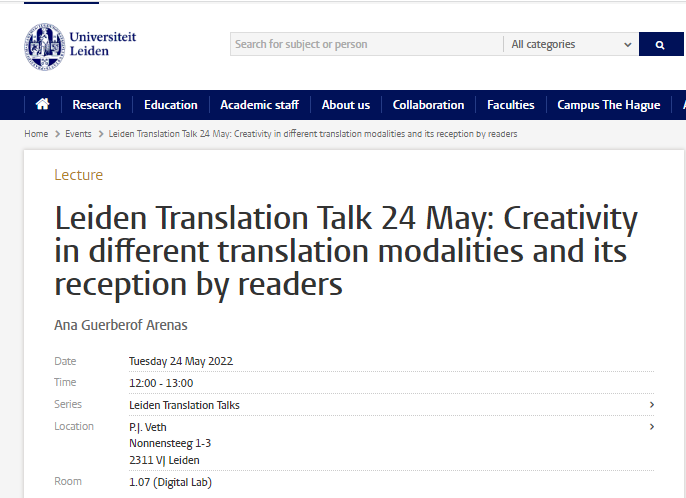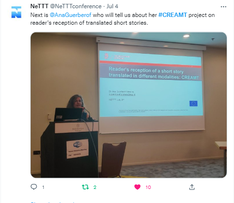 And on the other hand, the project has found that readers are less engaged, enjoyed less and think the translation is worse when reading MT, and higher when translators intervened (human translation and post-editing). However, the differences in the readers' reception between Catalan and Dutch readers suggest that when looking at creativity and translated texts there are other factors such as reading patterns, reading language and language status in a given country, and language, that impact also the readers' engagement with that text.