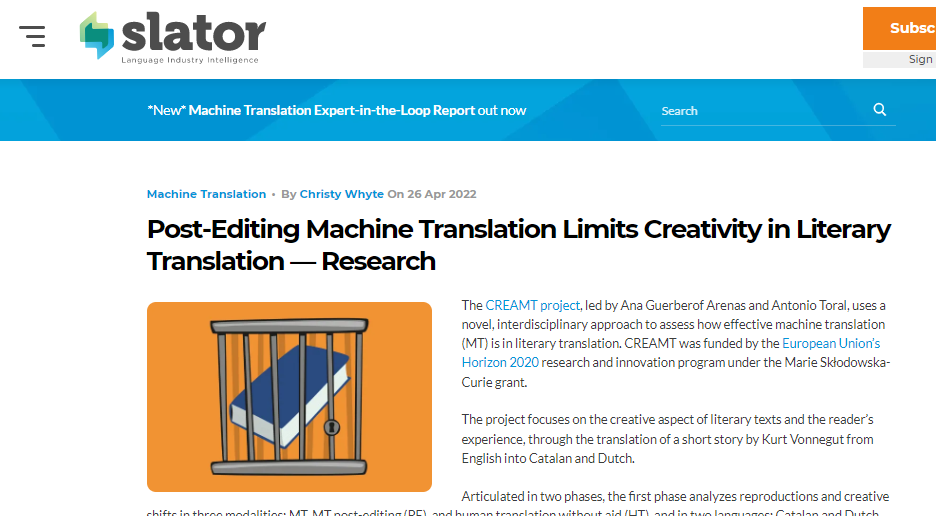 The focus of the project is on the textual elements that determine creativity in translated literary texts as well as to assess the experience of the reader, to assess how effective MT is in literary translation.