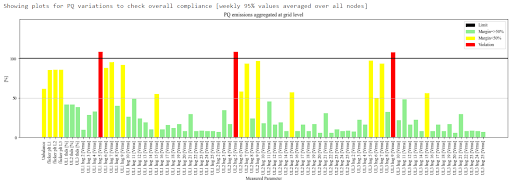 10-minute data stream was used for analysis of supply voltage variations, unbalance, harmonics, and total harmonic distortion. Flicker analysis is possible using 2-hour data and power frequency variations can be analyzed using 10-second data. The availability of weekly data at different time granularities facilitated the understanding of PQ emissions from top to bottom level, i.e. analyzing PQ indices at grid, node, week, and day level. The analysis also helps in feeder balance study, detecting anomaly and highlighting significant correlations between different PQ variations and PQ events during a time frame of interest. A summary of available margins at different nodes help in alerting the DSOs of critical situation, and the correlations based on a knowledge base of root-cause, consequences, and mitigation strategies help the DSOs with availability of list of possible actions which can be taken to strengthen the grid against PQ issues.