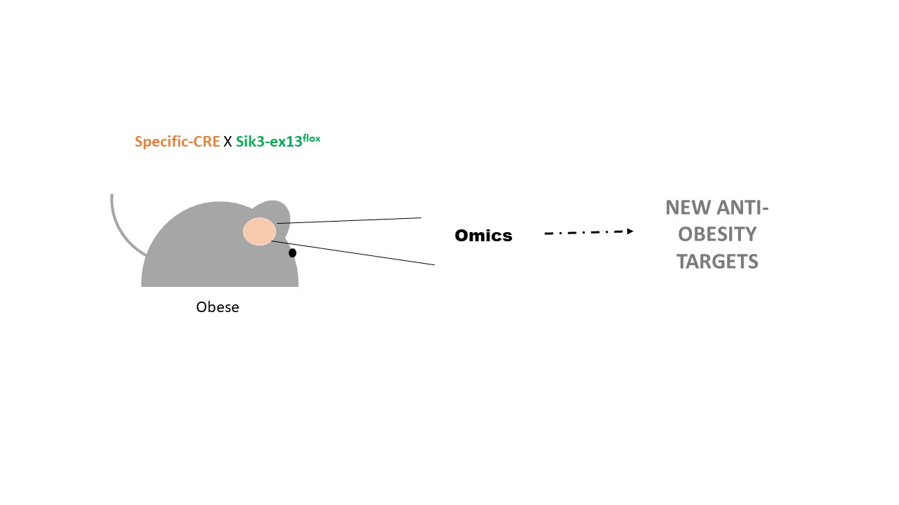 The regulation of body weight and fat mass is a complex biological process dependent on the brain's ability to sense, integrate, and send a wide range of signals to generate a behavioral, autonomic, and/or endocrine responses. SIK3 is a protein kinase that belongs to the AMP-activated protein kinase (AMPK) family, which is known as an energy sensor and regulates various aspects of metabolism in both invertebrates and vertebrates. It should be noted that mammalian SIK3 plays an important role in glucose and cholesterol metabolism, among other metabolic functions, at the peripheral level. Also, SIK3 is widely expressed in neurons of the cerebral cortex, thalamus, hypothalamus, and brainstem. This is important since the hypothalamus controls a large number of bodily functions; particularly important among them is the regulation of the energy balance and the endocrine axes. Until now, the role of SIK3 in the central nervous system in relation to energy metabolism was not described, so the main goal of this project was to identify the role of SIK3 in energy balance and its site of action, namely a specific neuronal population. Our results have demonstrated that Sik3 at central level regulates whole-body energy metabolism. Of note, Sik3 fine regulation of metabolism depends on the neuronal type and hypothalamic site of action. We also aimed to studying Sik3 suitability as a target to develop an anti-obesity therapy. Although our results are promising, further research need to be conducted to identify a potential target in this novel pathway to develop an anti-obesity therapy.