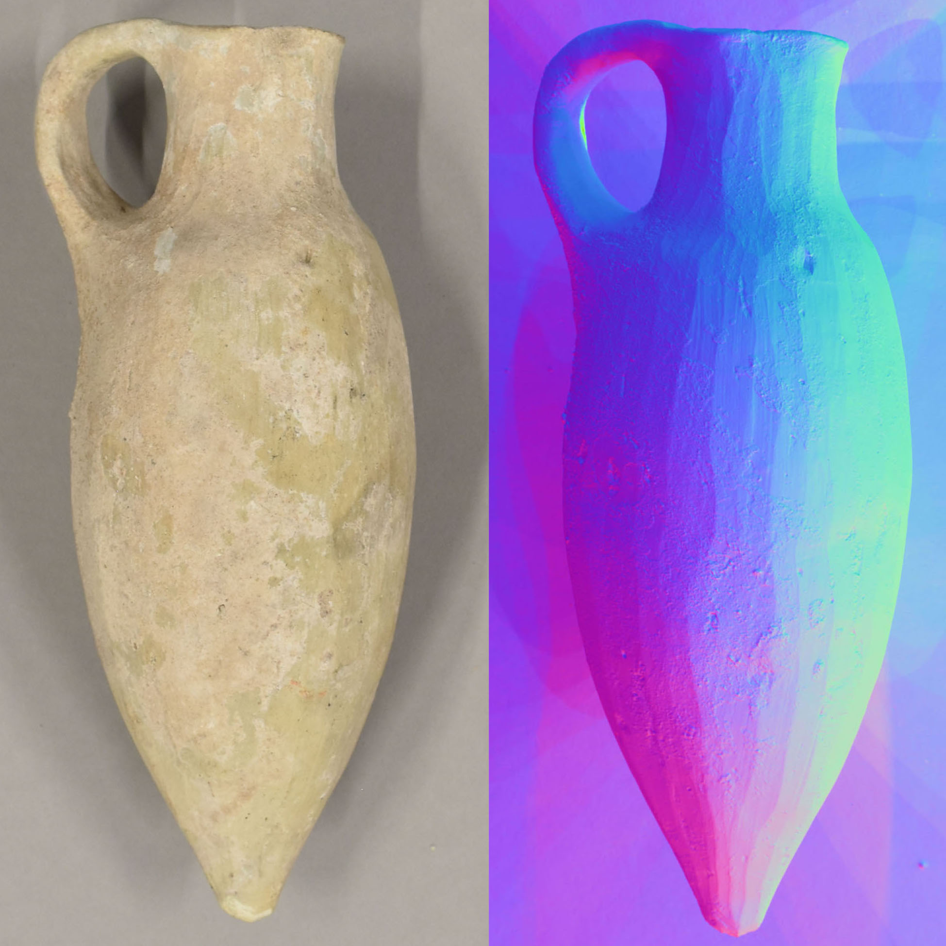 The reassessment of discovery contexts (Axis 2) has revealed that imitations are often discovered alongside their imported models, suggesting that they were not meant to compensate for a lack of Cypriot imports. Their functions also seem to have been similar to the ones of genuine Cypriot ceramics. The fondness for these artefacts prompted not only the production of faithful imitations but also the creation of “entangled objects” inspired by Cypriot prototypes, which combine both foreign and local features. The firsthand study of 131 imitations kept in Museum collections led to further important results thanks to the examination of macro-traces documented using RTI photography. The images obtained were used to highlight characteristic details of the different pottery traditions, such as shaving marks (Fig. 2). It was shown that, although Cypriot shapes and decorative motifs were imitated, the techniques were - in most cases – local.