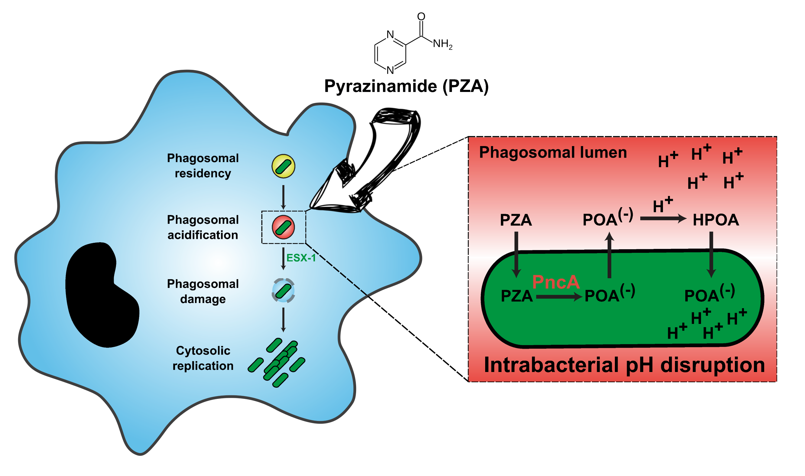 Intracellular mode of action of the antituberculous drug pyrazinamide (PZA)