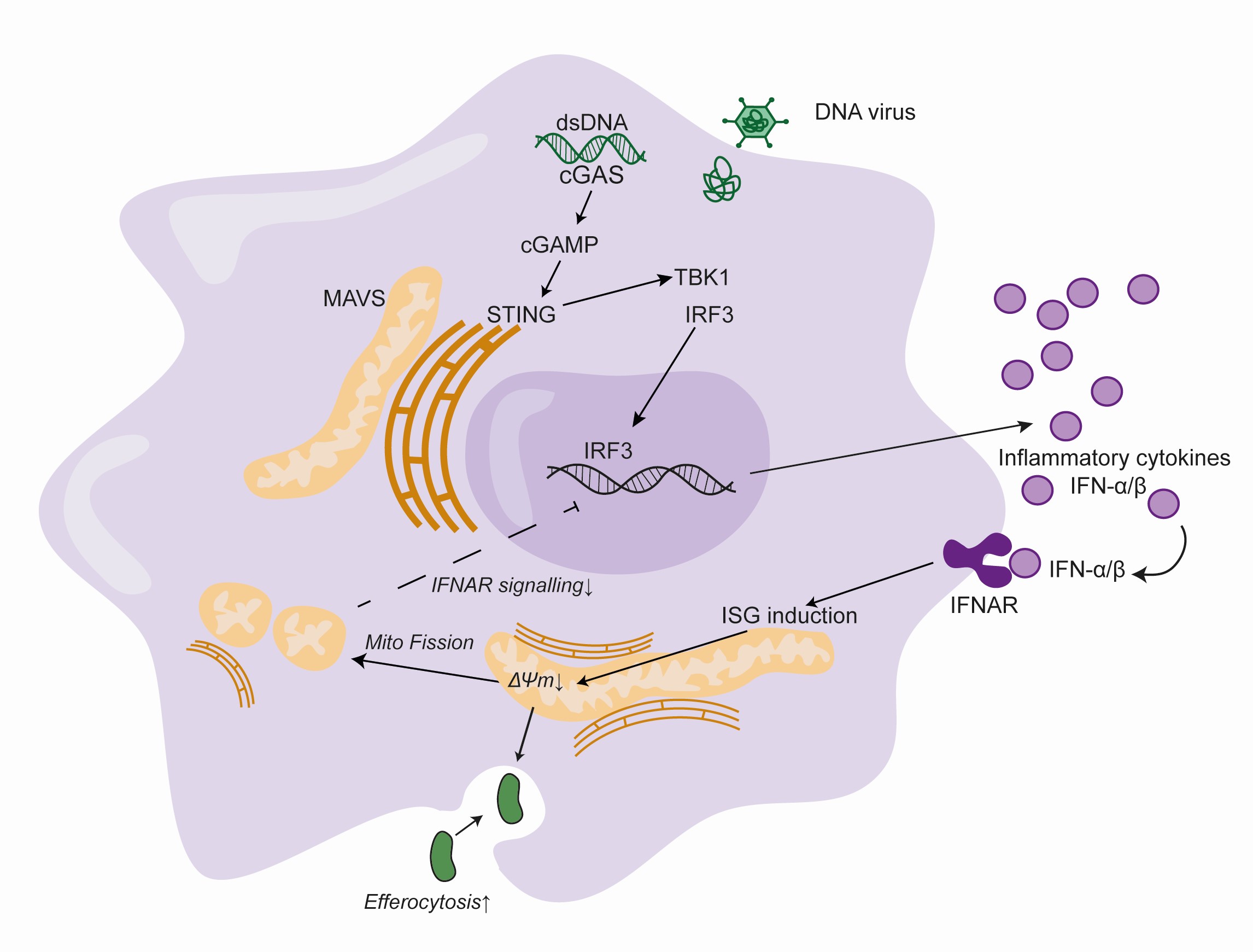 Then, based on the direction of the data, we planned to use inhibitors and genetic approaches to characterise the effect of inhibiting upregulated metabolic pathways on STING signalling. Macrophages have various functions within the body both in homeostasis and inflammation. We aimed to investigate their cytokine production, particularly the IFN-I response, and their ability to perform phagocytosis, one of their key functions.