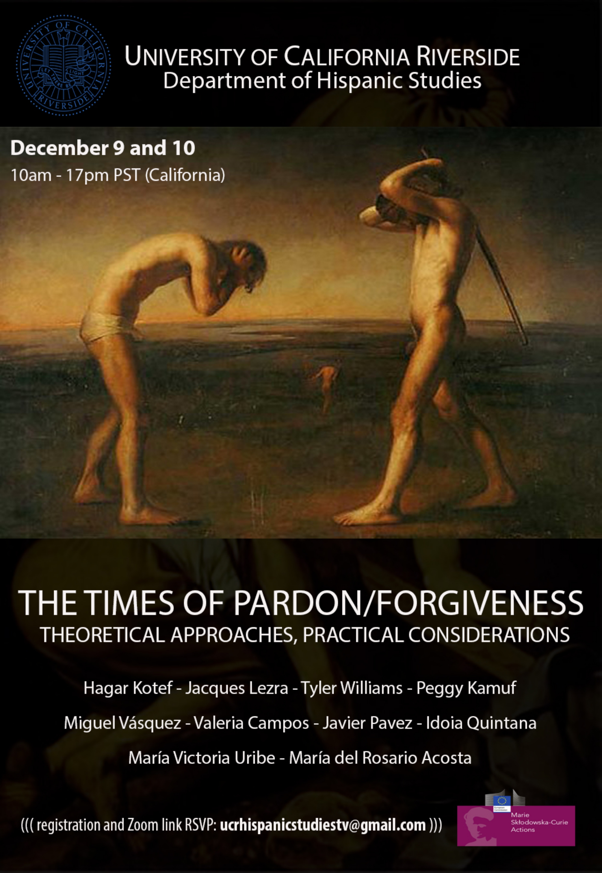 Among the dissemination activities, I would remark the International Conference on Forgiveness at the University of California Riverside organised by my supervisor Jacques Lezra and myself, on December 9 and 10, 2021: ‘The Times of Pardon/forgiveness: theoretical approaches, practical considerations’. This event has brought together great specialists from a total of seven different institutions and it has reached researchers and students from different disciplines of Humanities and Social Sciences due to its multidisciplinary approach. I should also point out three articles and a book chapter on forgiveness already published and one more pending publication, participation in six international conferences and the delivery of two seminars on forgiveness (as an ethical-political concept and as a topic that can be addressed from literature). In addition, an informative-pedagogic book on forgiveness in the Basque conflict is pending publication (Catarata, 2025).