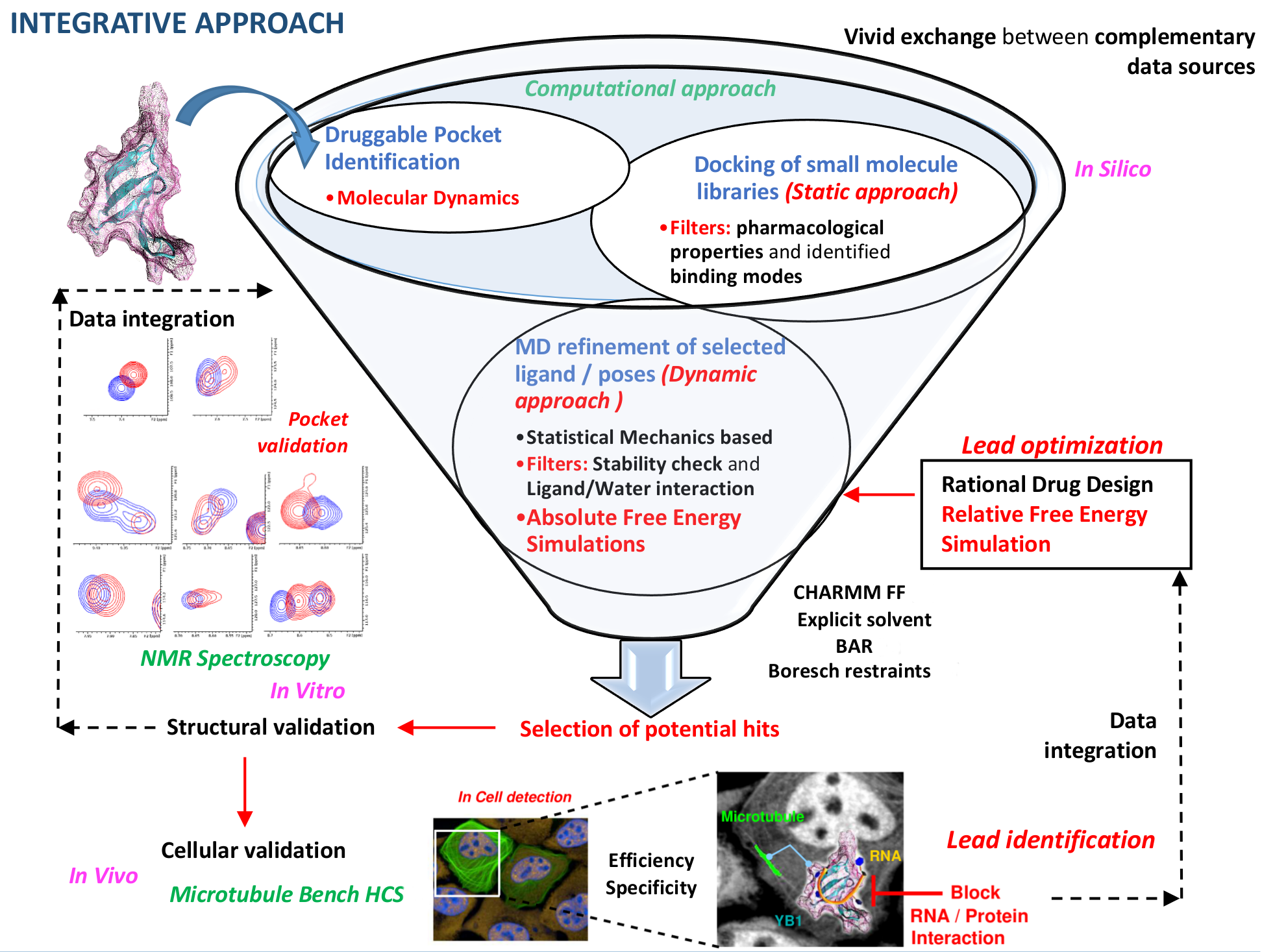 The work carried out creates a new venue in drug discovery by providing robust methods capable of targeting RNA:Protein Interactions. We have developed a unique method compatible with HCS to assess RPIs in cells, which, combined with experimental and in silico tructural approaches, can be used to target RPIs involved in human pathologies. And, here, in this work we demonstrated the usefulness of our integrative approach by successfully targeting mRNA:YB-1 complexes in cells.