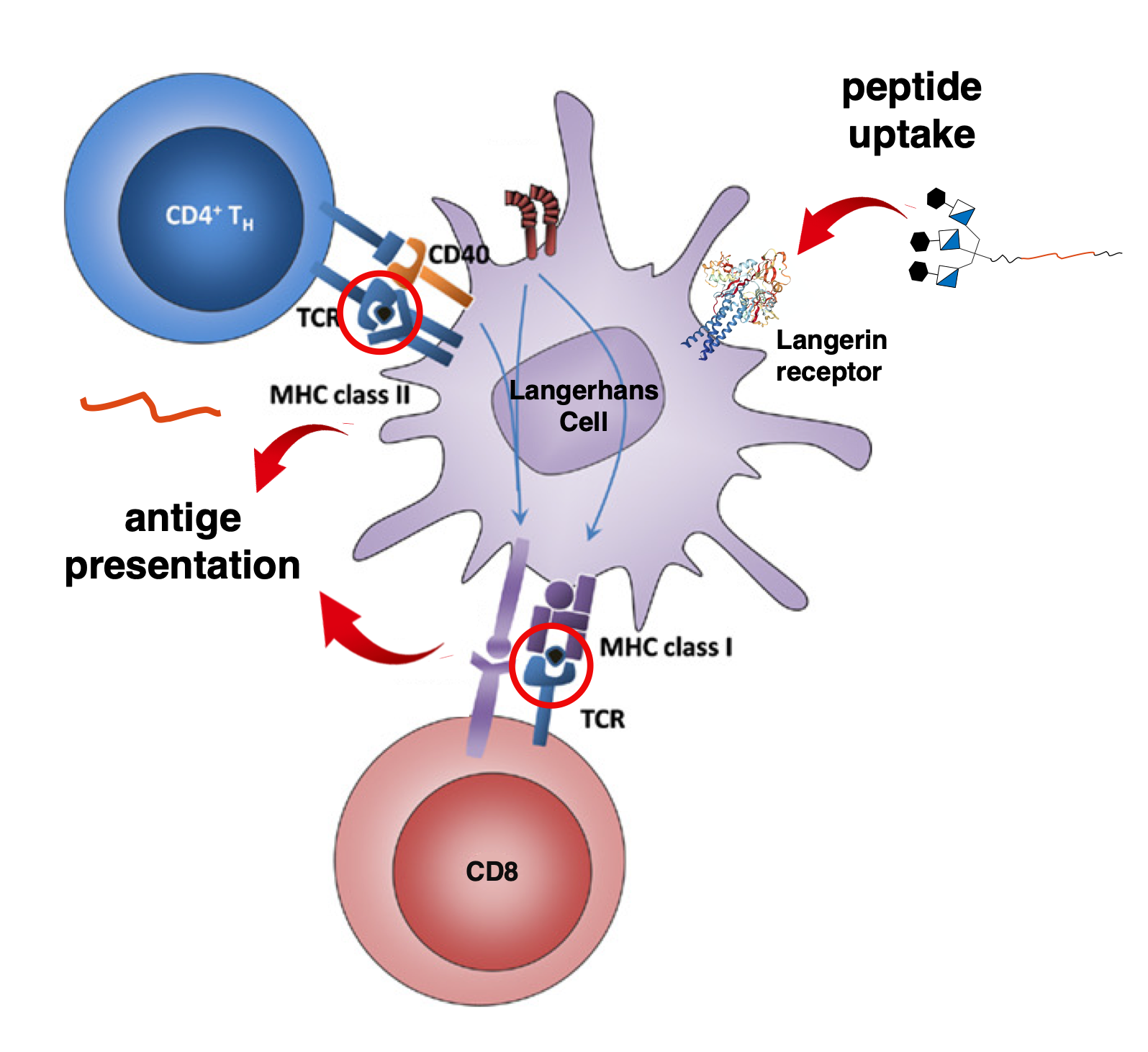 The project aimed to advance immune response modulation and targeted peptide delivery by designing and synthesizing antigenic peptides for the langerin receptor. Successful synthesis of OVA-derived peptides and antigen presentation on MHC-I/II complexes through liposomes with the targeting ligand showcased progress. However, challenges in glycopeptide synthesis prevented complete construct achievement. The use of lipid-based nanoparticles to enhance immune responses represents innovation beyond current methods, providing insights into immune recognition improvement.