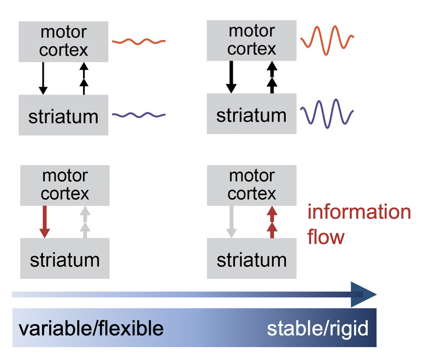 The project entitled "Cortical-subcortical information transfer underlying skill learning" (CSIT) was aimed at understanding the brain's stability-plasticity dilemma. The stability-plasticity dilemma is a critical constraint in brain networks underlying learning and memory. The dilemma is how the brain can acquire new information (plasticity) without overriding older knowledge (stability). In this project, we studied this dilemma by examining how brain activity changes as a new behavior is learned: are there specific brain areas involved only in learning, while brain areas store learned behaviors? Or do networks of brain areas interact to mediate both processes? We specifically studied two brain areas associated with learning and storage of behaviors, the motor cortex and the subcortical basal ganglia. Neural signals were recorded across both regions in the rat brain as rats learned a specific motor task that allowed for the precise behavioral quantification of learning. We then measured the behaviorally relevant information carried by neural signals in each brain area, as well as the information flow between areas. We found that while both motor cortex and the basal ganglia contained behaviorally relevant information during the initial learning of the task and the production of the stored, learned behavior, the flow of information changed dramatically. During learning, information flow was "top-down", originating from motor cortex and flowing subcortically, however, when the stored behavior was performed after learning, information flow was "bottom-up", originating from the basal ganglia and flowing to cortex. This revealed to us that there are not separate regions in the brain that underlie the learning and storage of a behavior. Rather, distributed networks of cortical and subcortical brain regions mediate both processes, with changes in the dynamics of communication within the networks allowing them to switch functions. To achieve the results of this project, we developed a new computational tool that allowed us to isolate the dynamics of behaviorally relevant information flow in the brain. Our tool will help advance our understanding of brain function, both within the context of the brain's stability-plasticity dilemma, as well as other complex functions of the brain. The results of this project shed light on how distributed networks in the brain, spanning both cortical and subcortical areas, work together to generate behavior. This understanding is fundamental for understanding of how brain areas communicate, as well as our understanding of how brain injuries impact both the ability to learn new behaviors and perform stored behaviors.