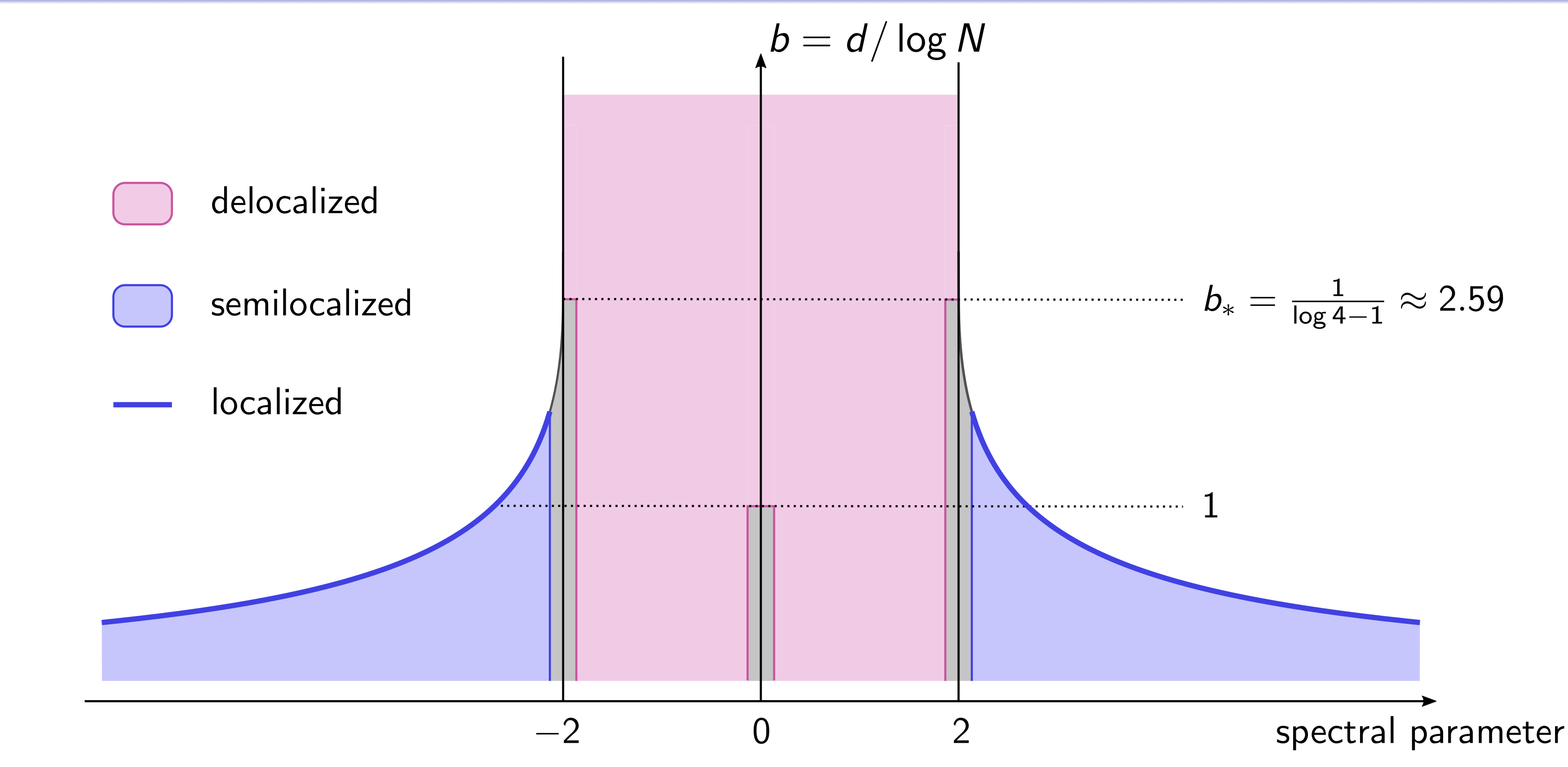 In a further work, the same type of eigenvector localization as described above at the spectral edges was proved by Raphael Ducatez, Antti Knowles and the MSC fellow in a much larger region near the spectral edges for the Erdős–Rényi graph. The fundamental novelty was a lower bound on the minimal distance between two eigenvalues in this spectral region, which is obtained via an anti-concentration inequality for the sum of independent random variables due to Kesten.