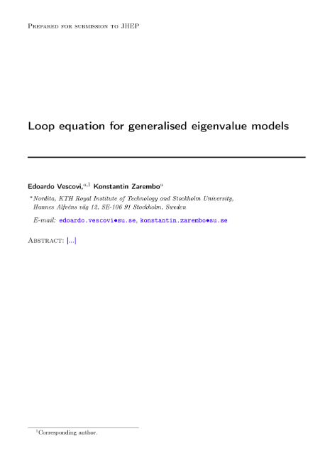 The work in preparation is about loop equations, which are tools to study quantum field theories in 0 dimensions, or matrix models. In supersymmetric Yang-Mills theory, one matrix integral measures a certain (half-BPS, circular) Wilson loop. This opens a unique avenue in quantum models, where physical informations is a very complicated integral (in infinite dimensions, not zero). For some (Hermitian, beta-ensembles) matrix models, recursive (topological) solutions have been developed, but are virtually confined to the simplest models. The Researcher considered a general class, formulated the loop equation and an algorithm to construct the solution to arbitrary order in genus expansion. We put forward new high-precision small/large-coupling coefficients and perform a numerical study at intermediate coupling. Important applications are a massive version of supersymmetric Yang-Mills theory and the Hoppe model. The loop equation is the tool to move the goalpost to the finite-coupling range, probes similar supersymmetric theories and supports string theory and integrability studies.