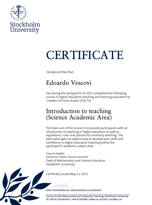 1 lecture "Symmetry: simplicity and beauty of fundamental laws" at Uppsala University, as organiser of "Adventures through the laws of Nature" with 130 international registrants. The recording is available on Youtube. The Researcher advertised the event in Eventbrite, Facebook, Meetup and Reddit, reaching out to 8,000 Swedes, and targeted bulletin boards in the Stockholm's Culture Night with 50 posters and 100 leaflets.