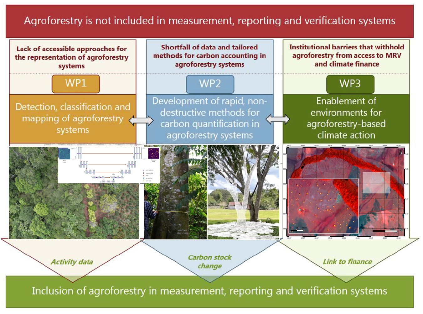 TREES4CLIMA addressed three shortcomings in scientific research that prevent the adoption of agroforestry: 1) Lack of accessible approaches for the representation of agroforestry in MRV systems; 2) Shortfall of data and tailored methods for carbon accounting in agroforestry systems; 3) Institutional barriers that withhold agroforestry from access to MRV and climate finance. The overall research objective was to develop and test robust, cost-effective approaches to account for carbon in agroforestry systems and enable innovative environments for climate finance, and the creation of practical pathways to integrate agroforestry into MRV and regulatory frameworks that unlock incentives.