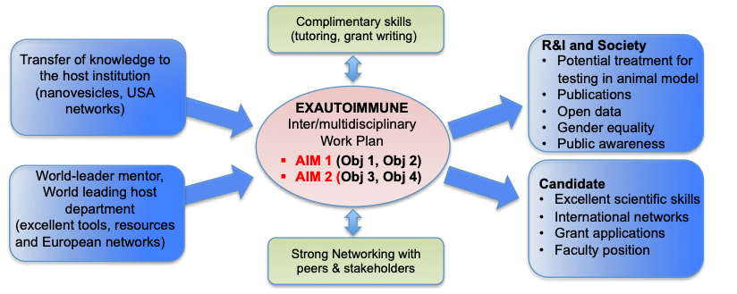 The fellow’s goal for the near future is to define molecular targets for pathogenesis and treatment of autoimmune diseases that can be tested in predictive models. The results obtained from these mouse models will lead to novel treatment approaches for the human disease while at the same time increasing the output of research and innovation (R&I) and resulting to more knowledge and ideas converted into therapies in Europe.The dissemination activities of the project result in broader and better communication of R&I results to society, demonstrating that science is not (only) for scientists, but aims at helping European citizens in diagnosis, treatment and cure of common diseases. The researcher’ s permanent return to Europe strengthens European human capital base in R&I and leads to enhanced and stronger scientific networks that produce long-term synergies and define EU and ERA as world leaders in the battle against autoimmune diseases.