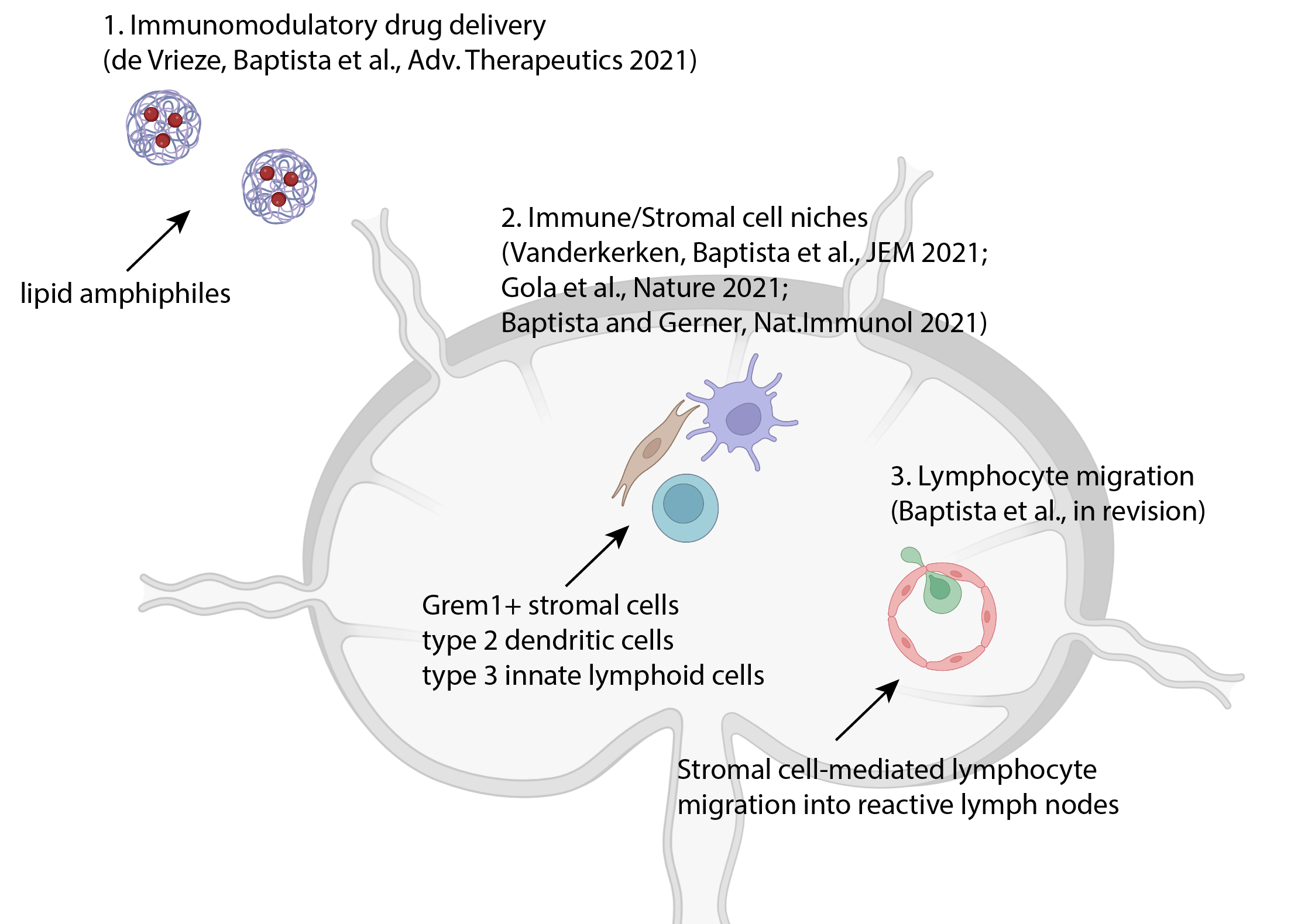 5. Baptista AP, Gerner MY. “Lymphoid stromal cells proGrem dendritic cell homeostasis”. Nat Immunol 22(5):541-543, 2021 (invited preview)