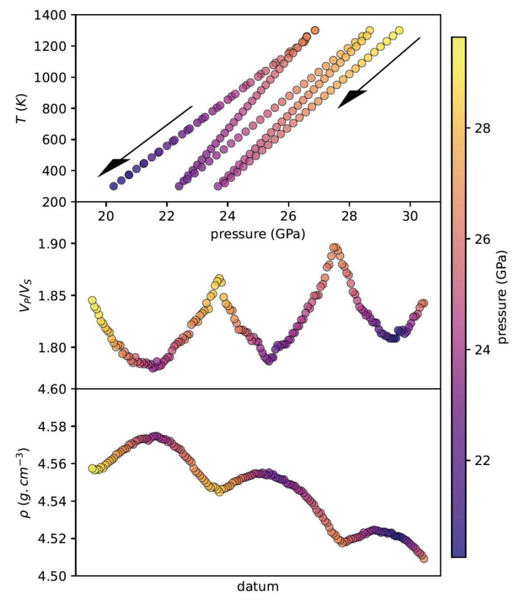 At the start of ELASTIC, the project was entirely beyond state of the art. The diffraction resolution required to individuate the transformation had hardly been reached (and required further developments at the beamline for its resolution – which remains the only beamline capable of such measurements). The ultrasonic equipment was upgraded following Thomson et al., 2019 and had yet to be extended to smaller 7/3 assemblies capable of reaching the required pressures. This in turn required access to specialised Japanese anvils with increased hardness. With the combination, we were able to entertain world-beating records for the highest pressure-temperature ultrasound measurements. The data collection, in its ensemble, will not be bettered without a very significant change to the experiment at its most fundamental levels (new detector, anvils, ….).