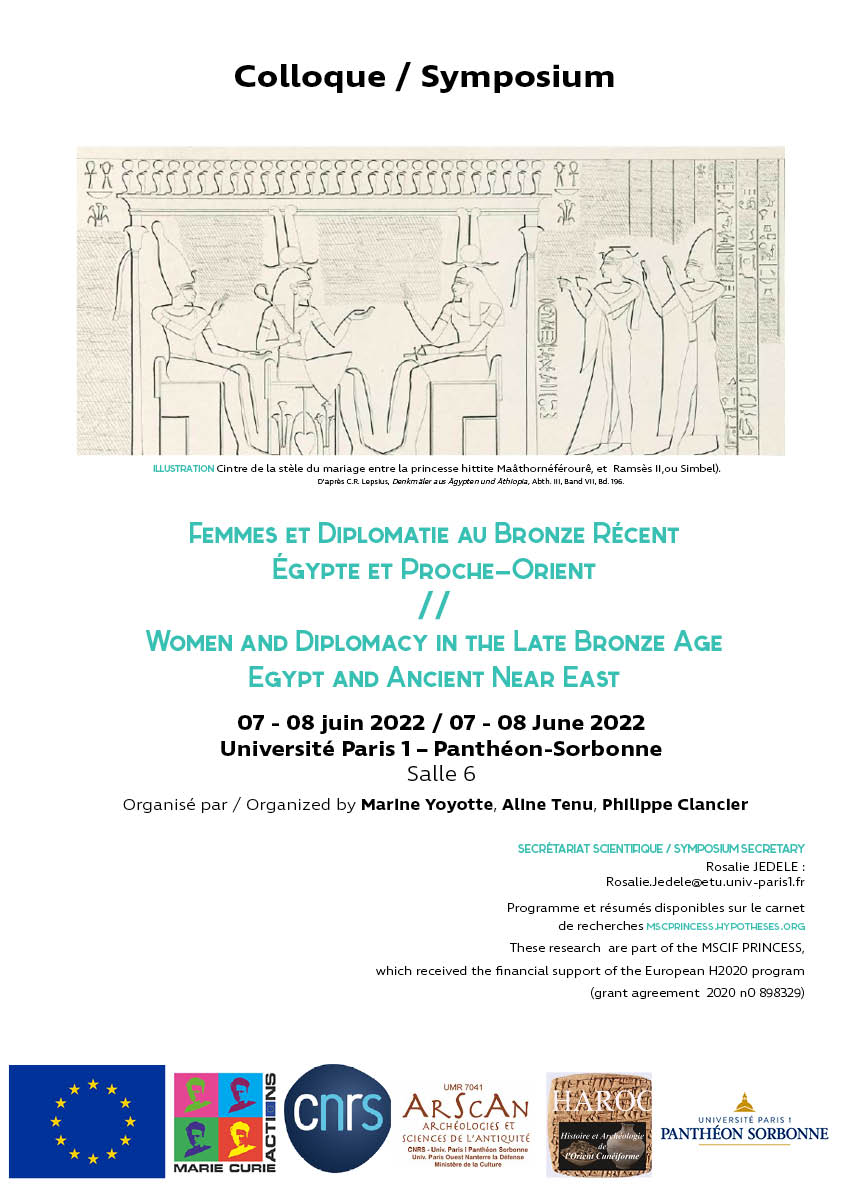 The co-organization with Dr. Aline Tenu (supervisor, CNRS) and Dr. Philippe Clancier (Paris 1 Panthéon-Sorbonne university) of the 2-days symposium on Women and Diplomacy in the Late Bronze Age. Egypt and Ancient Near East was one of the main achievements of the project. Gathering 15 specialists this sympOsium will be a key-reference for former studies. It was not only focused on the alliances between Egypt and Ancient Near East, but also between the different kingdoms of Ancient Near East, as a source of comparison. The strategies and stakes of these diplomatic alliances have been studied, as well as their legal aspects. The originality of this symposium laid in the fact that all the main Late Bronze Age kingdoms were part of the study: Egypt, Hatti, Mittani, Assyria, Babylonia and Amurru. The concept of agency was highly discussed as an analytical tool applied to these royal women. The proceedings of the symposium will be published in the “Women of the Past” series (Brepols Publishers), mainly in English in order to reach a broader audience. This workshop has also been the occasion for me to build a network among the international specialists of Ancient Near Eastern studies working on the history of women and gender studies