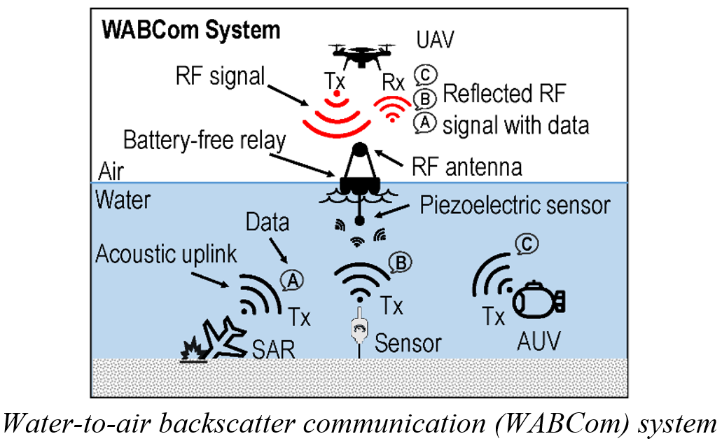 2) Development of a new water-to-air backscatter communication technology that outperforms existing technologies in terms of less power consumption of the buoy to over the water-air barriers.