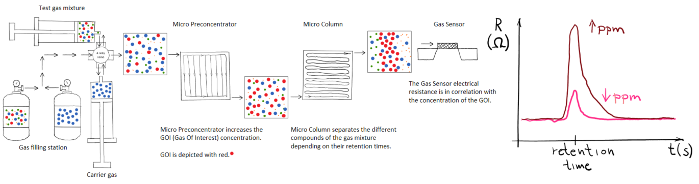 Main objective of this action was to enable monolithic integration of the main components of the above described system: gas sensor, microcolumn, and preconcentrator all in a single silicon chip. The dramatic advantages of this integration are in the cost, footprint, and energy efficiency. In particular, the extremely reduced footprint will make it possible to embed these sensors in consumer mobile devices such as smartphones and wearables.