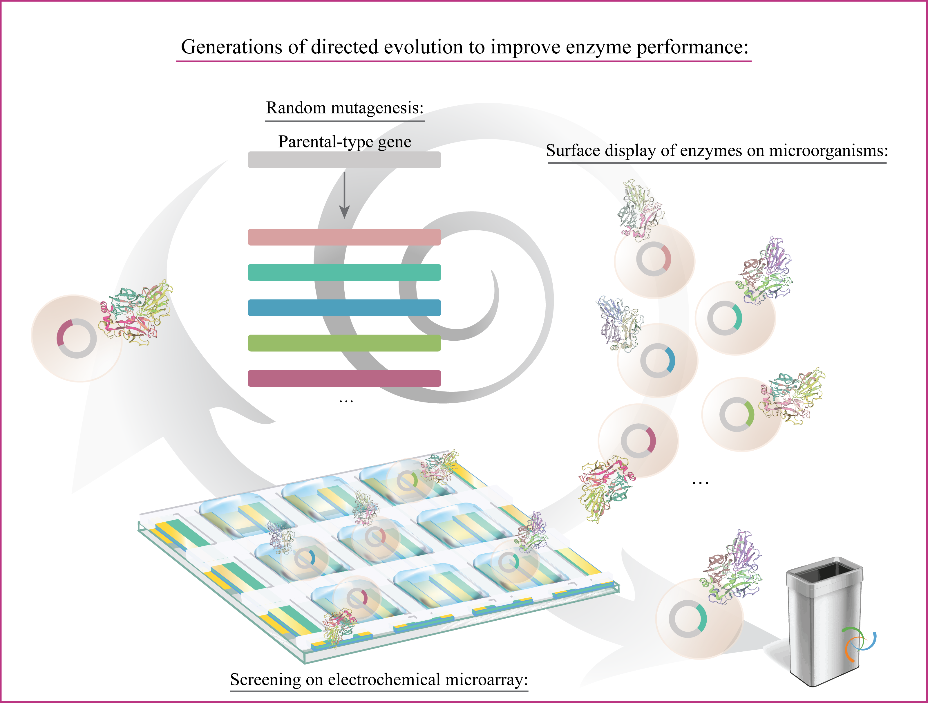 Directed evolution of metalloenzymes based on directed eletron transfer of enzymes and interfaces are missing in literature, in particularly, to direct metalloenzymes to fit the best possible their electron transfer environment. However, it is important for metalloenzyme applications, for example in enzymatic biofuel cells.