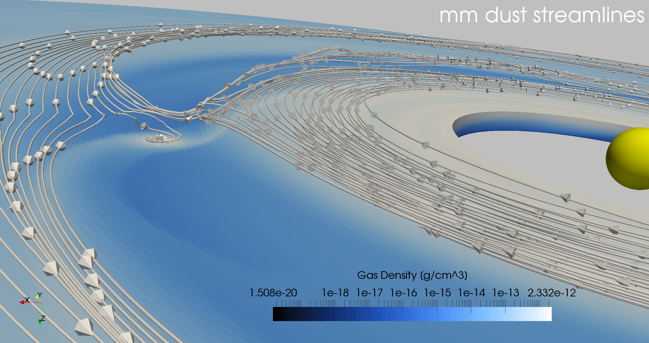 The second paper was the continuation of this first work, and entitled “Meridional Circulation of Dust and Gas in the Circumstellar Disk: Delivery of Solids onto the Circumplanetary Region”. We found that the meridional circulation (Szulágyi et al. 2014; Fung & Chiang 2016) drives a strong vertical flow for the dust as well, hence the dust is not settled in the midplane, even for millimeter-sized grains. The meridional circulation will deliver dust and gas vertically onto the circumplanetary region, efficiently bridging over the gap.