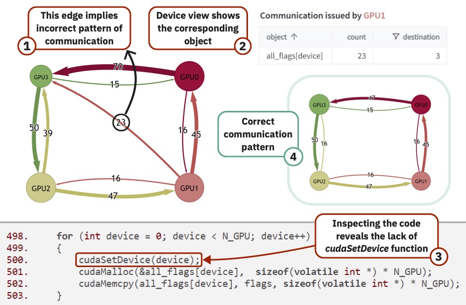 Another achievement is the creation of the Snoopie tool, which helps analyze and monitor data movement in high-performance computing and deep learning tasks. While Snoopie doesn't replace existing tools, it addresses important gaps in the toolkit by focusing on GPU performance. It has garnered attention from major companies like Facebook and Nvidia, demonstrating its value in improving code efficiency and identifying communication issues. We plan to release the source code for Snoopie under an open-source license, making it available to the wider research community.