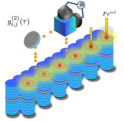 Work Package 2- In the upcoming months, we will use our superconducting nanowire single photon detectors to measure quantum correlations in the train of photons emitted through a single microcavity. We will use both our new two-color excitation scheme as well as electrically contacted samples to enhance the temporal correlations. We will then implement small lattices, and search for signatures of both temporal but also spatial correlations.