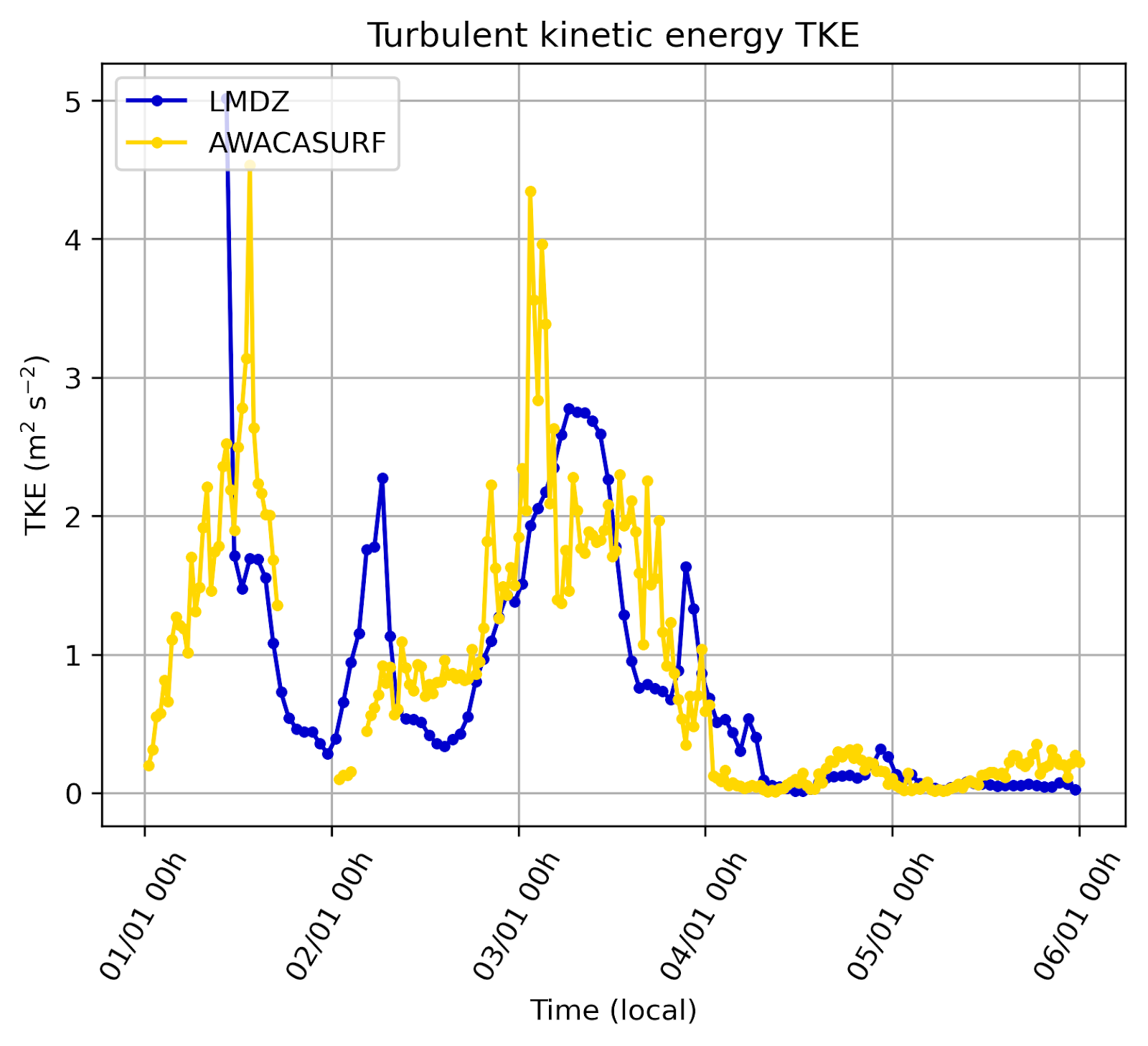 Data from 3 weeks of turbulence observation with the sensor deployed in the 2022-23 austral summer as described above, have been compared with LMDZ model and the agreement is quite good: the turbulence parametrizations in the model are reasonably successful in the conditions of this particular period. The agreement remains to be confirmed in other cases of wind and other surface meteorology conditions as more data become available with time.
