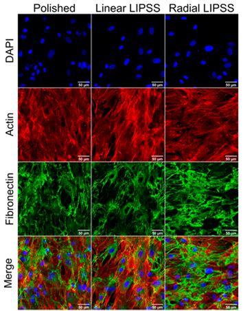 Laser-induced periodic surface structures (LIPSS) can influence the differentiation of human mesenchymal stem cells (hMSC) into the osteogenic direction. As is demonstrated in our recent publication (M. Maalouf at al., Nanomaterials 2022, 12, 1619), the best results are obtained by Radial LIPSS generated on Ti-based surfaces by azimuthal polarized femtosecond laser light. This fine tuning of ultrashort pulse lasers may be a promising new route for the functionalization of medical implants.