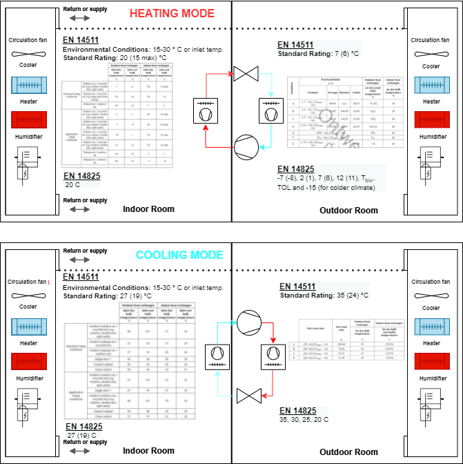 Quality labels such as EHPA (European Heat Pump Association) and KEYMARK and their requirements were also investigated. The design effort has been limited with the performance testing of electrically driven residential heat pumps with a maximum thermal heating/cooling capacity of 20 kW. Within this context, the test facility is sized within the guideline of the mentioned European standards and considering different parameters such as the type of heat pumps, their capacity range, efficiency (COP/EER values at different test conditions), defrost mode etc.