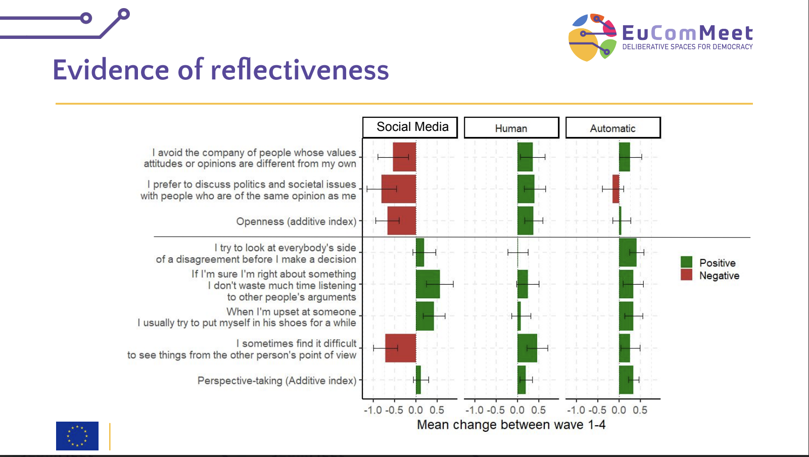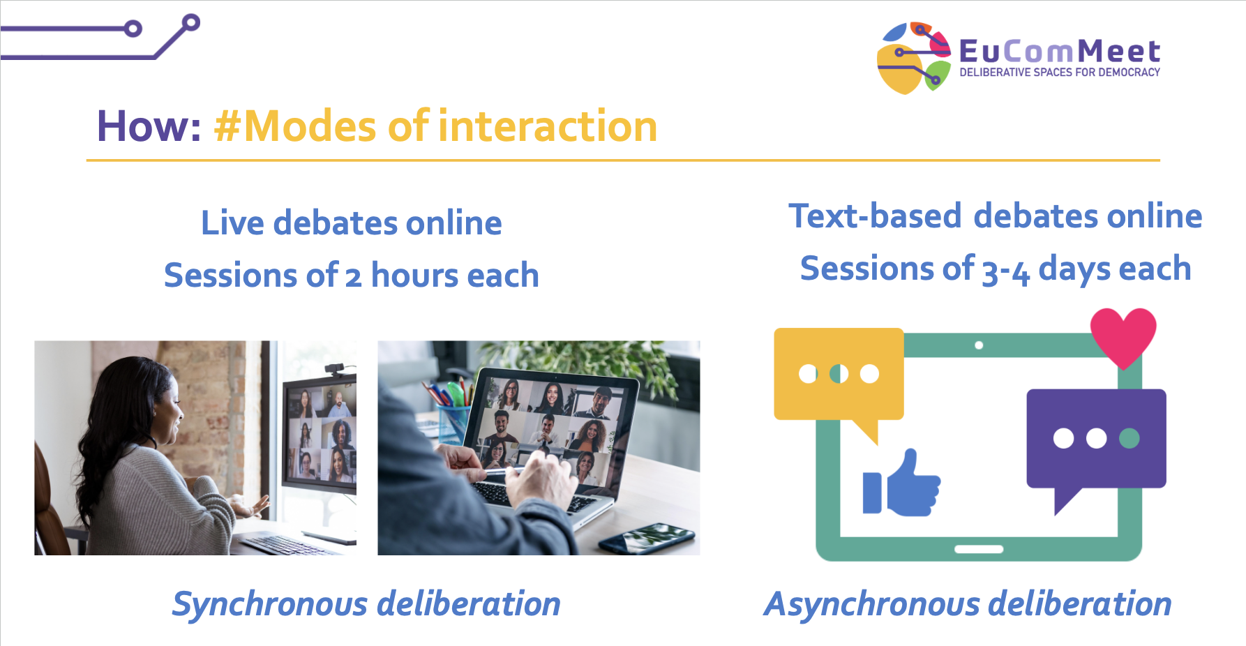 More specifically, EUComMeet aimed at making deliberation work in multilevel contexts and testing whether and to what extent deliberation can effectively help address the main challenges to liberal democracy, such as: low inclusion, polarization, reflexivity, a weak European identity, and the gap between citizens and political elites.