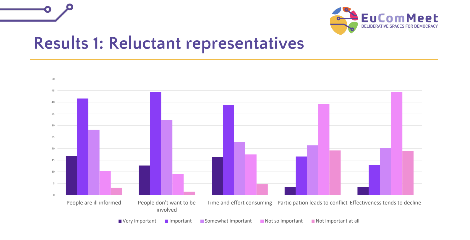 - Citizens are eager to join deliberative processes, but their participation is encouraged by short-term events with flexible schedules.