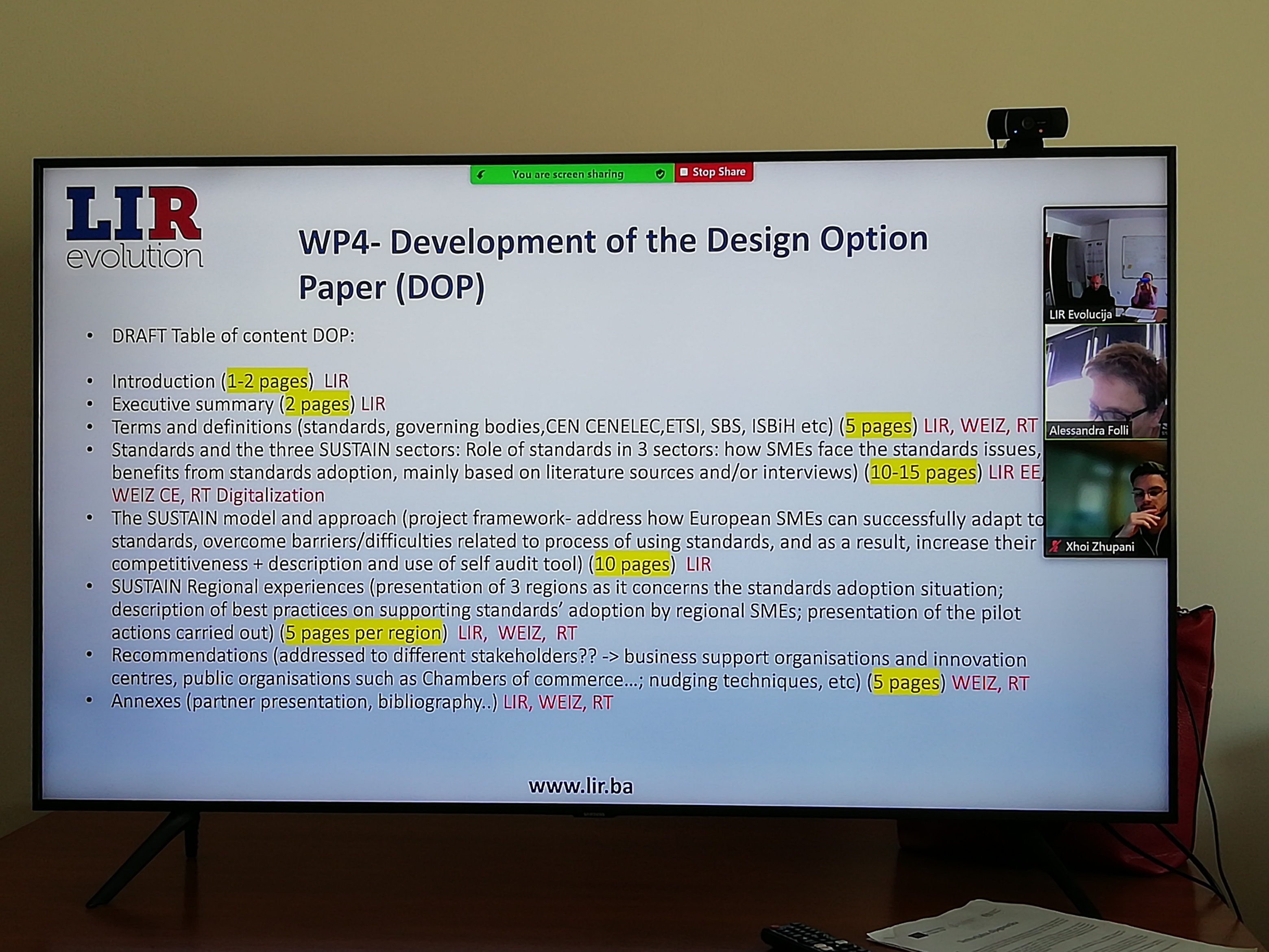 WP4 is led by RT, while WEIZ and LIR were actively involved in all activities in WP. Partners collaborated on development of DOP. DOP is based on the outcomes of the peer learning process and addresses how European SMEs can successfully adapt to EU standards, overcome related barriers and increase competitiveness. DOP was discussed during Virtual Conference organized by partners. DOP is disseminated through the partners’ networks and shared with interested innovation agencies to spread gained knowledge.