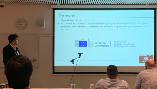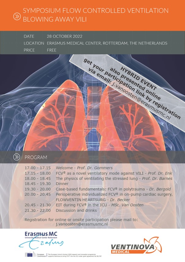 To create awareness of FCV and to enlarge exposure, results of WP2 were shared with relevant stakeholders and decision makers through (scientific) publications in journals and showcasing at conferences. Due to the pandemic congresses, networking events and demonstrations were cancelled. Therefore we developed the Ventinova Academy: an online training facility in order to train KOLs, distributors and users of the FCV ventilator. In order to disseminate results we organized webinars in which experts shared their clinical experience of using the FCV ventilator. In 2022 congresses were organized again and Ventinova exhibited at the ESAIC (Milan) and EAC2022 (Antalya). At various international congresses FCV was presented. Further, one case report (Spraider et al crit care 2020), two comparative studies (Van Dessel et al ICMx 2022 and Grassetto et al Pulmonology 2022) and two pig studies (Schranc et al Front Pediatrics 2022, Spraider et al EJA in press) are (being) published in scientific journals.