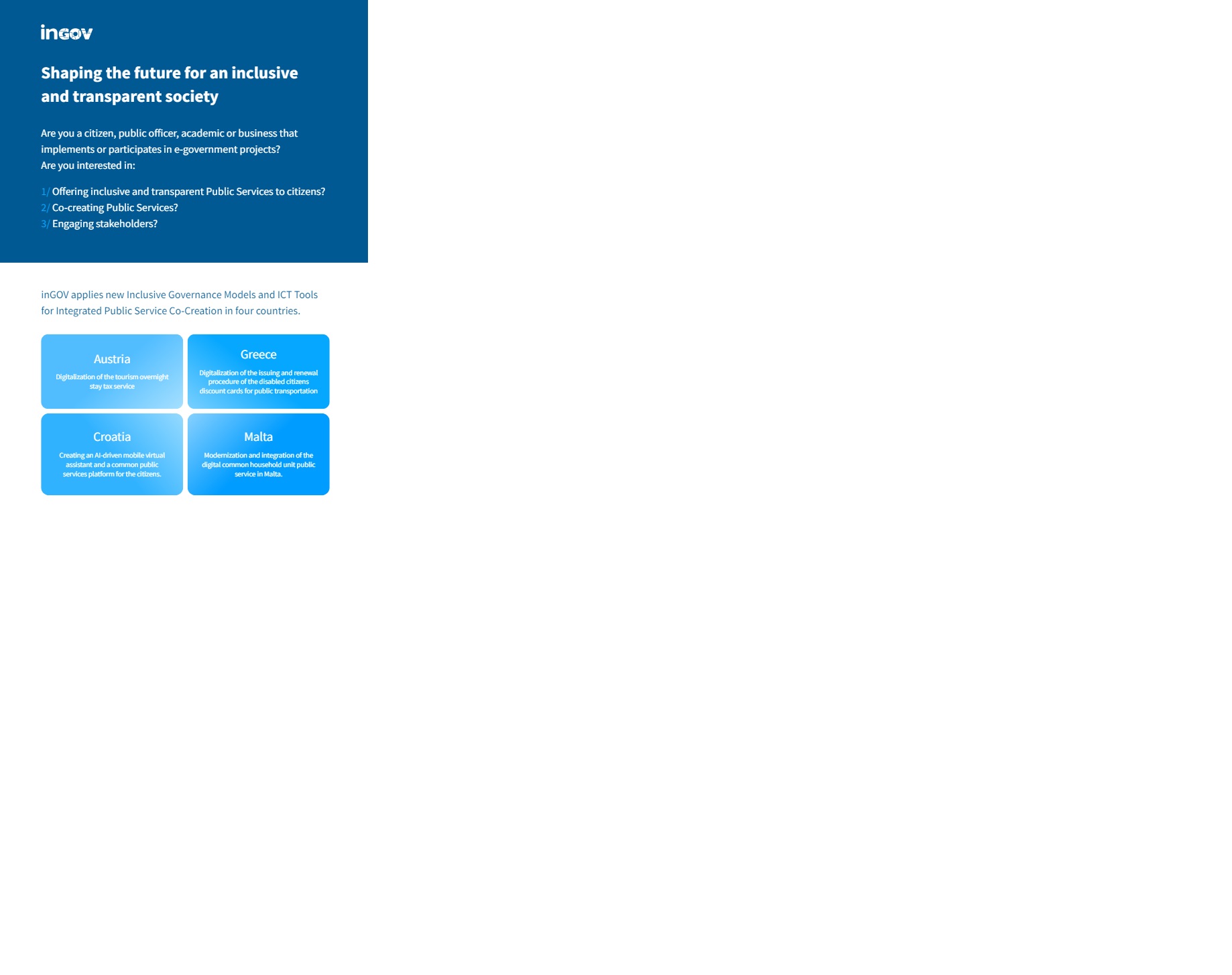 Periodic Reporting for period 2 - inGOV (Inclusive Governance Models and ICT Tools for Integrated Public Service Co-Creation and Provision)