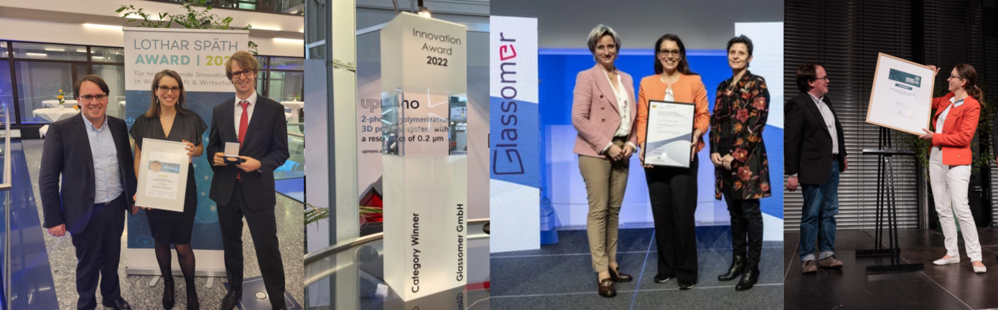 The project has created a new state-of-the-art technology for glass making on an industrial scale. The technology enables shaping of fused silica glass at low temperatures and low energy consumption. For the innovation and the technology transfer achieved, Glassomer has won several awards including the prestigious Lothar-Späth-Award 2021 for clever innovations of Baden-Württemberg (BW), the innovation award of the Laser World of Photonics, the Umwelttechnikpreis (environmental technology award) and the Innovation award of BW (see Figure 7).