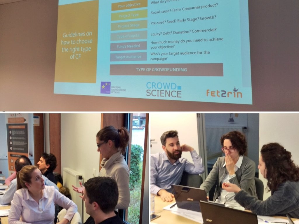 24–25 January 2019: Representatives of 5 FET projects (Ves4US, evFOUNDRY, EDIT, D_NOISE, evo_nano) came together for another two-day FET2RIN training workshop at the EBN (ebn.eu) premises in Brussels. During the two days, the FET project participants worked with mentors from the EBN network and trainers from META group (http://www.meta-group.com/Pages/default.aspx(opens in new window)) to get a better understanding of the commercialisation potential for their research findings. They learnt about leveraging their projects’ customer expectations (value proposition), financing alternatives (crowdfunding), Intellectual Property (IP) and pitching. Value proposition design Value proposition is about creating products/services that meet customers’ expectations, and one of the common mistakes entrepreneurs and researchers make is losing sight of customers’ needs by focusing too deeply on the product/service/research/technology at hand. To avoid this mistake, the FET participants worked with their mentors, experts in business strategy and coaching, to analyse their project’s potential customer market and its expectations. “Let’s focus on your early adopters. Let’s think outside of the Lab and focus on the question, why somebody should adopt your technology” - Dario Mazzella from META Group (http://www.meta-group.com(opens in new window)) encouraged the participants. IP strategy and commercialisation options for R&D projects Which IP aspects do FET participants need to take into account for successful exploitation of their research results? What are the important aspects to take into consideration when building an R&D consortium? FET participants learnt about these key topics from FET2RIN trainer Raffaele Buompane, an IP specialist. Crowdfunding for R&D projects Crowdfunding is a viable financing alternative for R&D projects such as the FET projects, so both the second and third workshop explore this topic in-depth. Natalie Ann Jonk, founder of CrowdScience (https://crowd.science/(opens in new window)) a crowdfunding platform specialising in crowdfunding for R&D projects, and Francesca Passeri from European Crowdfunding Network (http://eurocrowd.org/(opens in new window)) talked about crowdfunding and how it can be best used to finance R&D projects. As a practical exercise, the FET participants had to think of the crowdfunding platform that would best suit their needs. Intro to pitching As a preparation for the final workshop where the FET participants will pitch in front of investors, Dario Mazzella from META Group (http://www.meta-group.com(opens in new window)) gave an introduction to the art of pitching - how to pitch your R&D projects to an external audience? “People don’t really care about your technology. They care about what they can do with it and how it will make their life easier,” explained Dario Mazzella to the participants. What have participants said about the training? “The training is very helpful to introduce researchers to an entrepreneurial mindset!” Laura Corcuera, Ves4US (https://cordis.europa.eu/project/rcn/216332/factsheet/en). “The training is great! We would have needed it from the beginning of our project. It would have saved us a lot of time and error.” Amin Hassani, D-Noise (https://cordis.europa.eu/project/rcn/209090/factsheet/en) This was the second workshop of the training with the final one taking place 21–22 February 2019 at the EBN premises in Brussels when the FET participants will learn more about crowdfunding and pitch in front of investors and business angels. In the meantime, follow us on Twitter (@Fet2Rin) and Facebook (@fet2rin)!