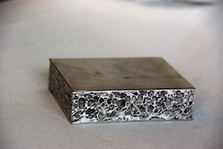 Aunque el metal y la espuma pueden parecer materiales completamente opuestos, cuando la estructura celular de un metal sólido está compuesta de poros llenos de gas, se obtiene lo que se llama espuma metálica. A pesar de que la espuma metálica es ultraligera, también es fuerte, lo que la convierte en un material perfecto para muchas aplicaciones dentro del sector automovilístico, aeroespacial y sanitario. El proyecto financiado con fondos europeos METFOAM se propuso comprender mejor el comportamiento mecánico de estas espumas metálicas. Según explica Stefan Szyniszewski, coordinador del proyecto: «Lo que hace que las espumas metálicas sean únicas es su capacidad para transferir calor de forma eficiente, lo que es útil para el enfriamiento a través del flujo del aire dentro de la espuma. Lo que queríamos saber era cómo podíamos aprovechar mejor estos comportamientos mecánicos en beneficio de aplicaciones del mundo real». Espuma metálica y paneles sándwich Por ejemplo, un ámbito en el que se centraron fueron los paneles sándwich con núcleos de espuma metálica. Un panel sándwich es una estructura formada por tres capas y que se utiliza en aplicaciones en las que se requiere un compuesto con elevada rigidez estructural y bajo peso. El objetivo de esta investigación era encontrar aplicaciones en las que estos paneles pudieran lograr mejores resultados que las secciones de acero convencionales. «Básicamente, intentamos entender un material novedoso y encontrar su nicho dentro de las aplicaciones mecánicas y de infraestructuras», señala Szyniszewski. «Lo que descubrimos fue que los paneles sándwich pueden soportar cargar diez veces mayores que las placas de acero delgadas». Según Szyniszewski, esos paneles sándwich podrían permitir una nueva generación de vigas de puentes ferroviarios o torres de turbinas eólicas al eliminar la necesidad de placas de refuerzo soldadas, que evitan que las placas se abollen. Estos rigidizadores producen concentraciones de tensión y requieren un mantenimiento periódico porque son las raíces de las grietas por fatiga. Desafíos superados Durante el transcurso del proyecto, Szyniszewski y su equipo tuvieron que superar varios desafíos. Por ejemplo, debido a que los paneles sándwich no son fiables con chapas de menos de 2 mm de espesor, los investigadores tuvieron que probar un panel con una rigidez y resistencia equivalentes a las chapas de acero de 5 mm. Desafortunadamente, esto significaba probar placas del tamaño de un hueco de ascensor; algo simplemente imposible con la plataforma de capacidad máxima de cien toneladas del proyecto. Para superar este desafío, los investigadores probaron placas individuales. «Esto nos obligó a diseñar dispositivos especiales capaces de proporcionar libertad de movimiento de rotación, al tiempo que nos permitía transferir cargas axiales importantes», afirma Szyniszewski. Nuevos potenciales para las espumas metálicas Gracias a estos esfuerzos, los investigadores descubrieron que la adición de esferas cerámicas a las espumas metálicas producía una resistencia al corte sobresaliente, que no tiene comparación con los materiales a granel convencionales. «Por último, el proyecto METFOAM demostró que las espumas metálicas pueden utilizarse para producir nuevos metamateriales con propiedades novedosas que no son alcanzables para los metales a granel o la cerámica», añade Szyniszewski. Los investigadores también descubrieron que la introducción de superficies porosas en los cuerpos romos puede reducir la resistencia aerodinámica. «Por ejemplo, una superficie porosa orientada hacia el flujo desencadena turbulencias, un poco como los hoyuelos de una pelota de golf», explica Szyniszewski. «Tener un medio poroso en el lecho del cuerpo reduce la presión de la base y la intensidad de la turbulencia». Añade que tales características podrían permitir el uso de espumas en superficies externas. Aunque el proyecto ya ha finalizado, actualmente, los investigadores están explorando aplicaciones de ingeniería civil, como vigas de transferencia con extrema resistencia a las abolladuras, que podrían beneficiarse del uso de componentes de placas de espuma metálica.