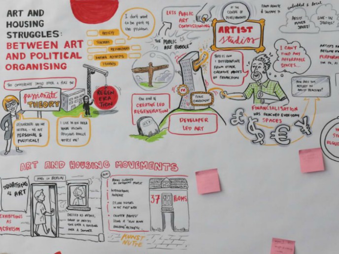 Il progetto HOUSREG(si apre in una nuova finestra) «ha messo in discussione il ruolo dell’arte socialmente impegnata nel quadro delle crisi degli alloggi in Europa», osserva la dott.ssa Elena Marchevska, coordinatrice del progetto. Il lavoro si è concentrato su Belgrado (Serbia) e Londra (Regno Unito). La dott.ssa Ana Vilenica, una ricercatrice finanziata da una borsa Marie Skłodowska-Curie, ha condotto per un anno uno studio approfondito sui programmi di custodia delle proprietà per artisti a Londra. La dott.ssa Vilenica approfondisce: «Gli artisti si registrano come custodi di una proprietà sfitta e, allo stesso tempo, sono invitati a creare un’opera artistica partecipativa a beneficio della comunità». Sebbene una simile offerta di alloggio per vivere/lavorare consenta agli artisti di affittare a prezzi inferiori a quelli di mercato, questa situazione è un buon esempio di precarietà abitativa. La sistemazione ha un altro prezzo: gli artisti sono privati dei diritti degli inquilini. HOUSREG sostiene che la custodia di proprietà comporta profondo disagio e frustrazione per queste persone. «Gli artisti sono divisi tra la necessità di sopravvivere in un mercato immobiliare inaccessibile e il desiderio di dedicarsi all’arte senza compromessi», afferma la dott.ssa Vilenica. Mappare gli artisti e le loro relazioni Durante il lavoro sul campo, la ricercatrice ha sviluppato un metodo di ricerca basato sulla mappatura degli attori e delle loro relazioni attraverso mappe relazionali disegnate a mano. Per convalidare questo nuovo approccio teorico, la dott.ssa Vilenica ha condotto studi di caso comparativi nel Regno Unito e in Serbia, che si sono concentrati sulle migliori pratiche di rigenerazione abitativa guidata dalla cultura: Balfron Tower a Londra e il quartiere Savamala a Belgrado. «I risultati mostrano differenze significative sul meta livello, soprattutto per quanto riguarda il coinvolgimento dell’arte nella ristrutturazione degli alloggi», afferma. Sul medio livello, entrambi gli studi hanno rivelato «una nuova narrazione aggressiva e imponente guidata dallo Stato e dai costruttori». Infine, sul micro livello, il lavoro ha individuato in entrambi i casi conflitti tra professionisti dell’arte e inquilini. Impatto della precarietà abitativa sull’opera d’arte Le ricerche condotte nel corso dei due anni di durata del progetto hanno determinato che gli artisti sperimentano una maggiore precarietà abitativa. Allo stesso tempo, la loro pratica artistica è stata usata in funzione del processo di smantellamento del welfare e di privatizzazione delle abitazioni. Alcuni dei risultati più significativi si basano su reti complesse formate da molteplici attori, fra cui l’Unione europea, le autorità comunali, i gruppi di attivisti, i residenti e gli artisti. Allo stesso tempo, «HOUSREG ha acquisito nuove conoscenze su come le relazioni fra questi attori influenzano il risultato dell’opera d’arte e che tipo di nuove relazioni sono prodotte da queste interazioni». Collegare l’arte e l’abitazione Attraverso il suo approccio interdisciplinare innovativo, la dott.ssa Vilenica ha contribuito a creare un nuovo campo di ricerca che collega l’arte e l’abitazione. L’introduzione di opere meno conosciute, provenienti da un contesto dell’Europa orientale, in discussioni accademiche e artistiche più ampie ha inoltre contribuito alla raccolta di conoscenze su città post-socialiste meno visibili. Tutto ciò ha dato vita a una rete di intellettuali e professionisti internazionali pronti a colmare il divario est-ovest nella produzione di conoscenza. Tra le attività di divulgazione erano previste la serie di tavole rotonde «Housing and Regeneration Struggles in South London»(si apre in una nuova finestra) e la conferenza internazionale «Art and Housing Struggles: between art and political organising»(si apre in una nuova finestra). Il gruppo di ricerca ha presentato diversi aspetti del lavoro di HOUSREG in vari eventi tenuti in otto paesi. Marchevska e Vilenica stanno attualmente preparando l’edizione del volume «Art and Housing Struggles», la cui pubblicazione è prevista per il 2019, e stanno collaborando a un progetto di networking internazionale che proseguirà il dibattito tra il Regno Unito e la Serbia. Questo lavoro usa la pratica artistica socialmente impegnata per comprendere la complessa intersezione tra migrazione forzata e nuove strategie di creazione di luoghi.
